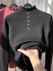 Cardigan falso de gola alta versátil de inverno, engrossado, cor sólida, slim fit, peça única, malha de veludo, suéter quente com forro de lã de inverno