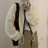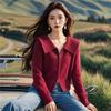 Outono Novo Zíper Duplo Manga Comprida Bolso Curto Suéter Feminino Retro Laps Slim Malha Cardigan Jaqueta Feminina