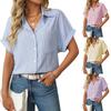 Primavera e verão 2025 Novas roupas femininas europeias e americanas transfronteiriças Amazon Camisa feminina solta de manga curta com bolso casual listrada