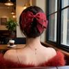 Presilha de Cabelo Laço Céu Estrelado de Luxo Leve para Mulheres, Grampo de Cabelo Vermelho Fashionable de Franja de Alta Qualidade para a Parte de Trás da Cabeça