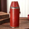 Garrafa de Aço Inoxidável de Meio Libra Cilíndrica Couro Marrom Exterior Copo Portátil Garrafa de Licor de Bolso Integrada 8 Onças