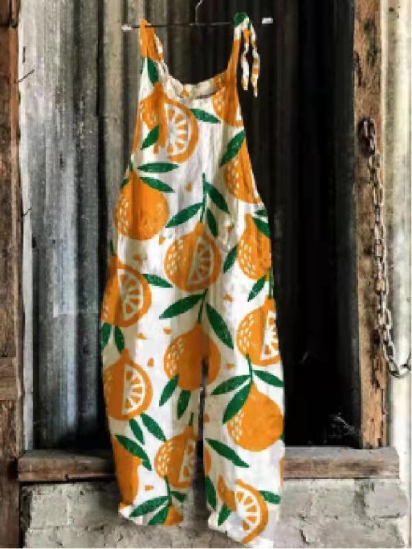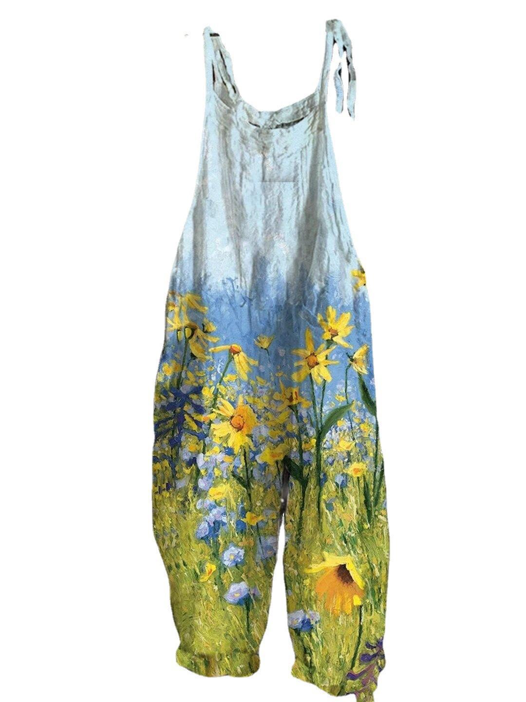 2023 Cross-border europeu e americano verão longo vestido rua moda marca suspensórios impresso cintura média moda macacão