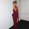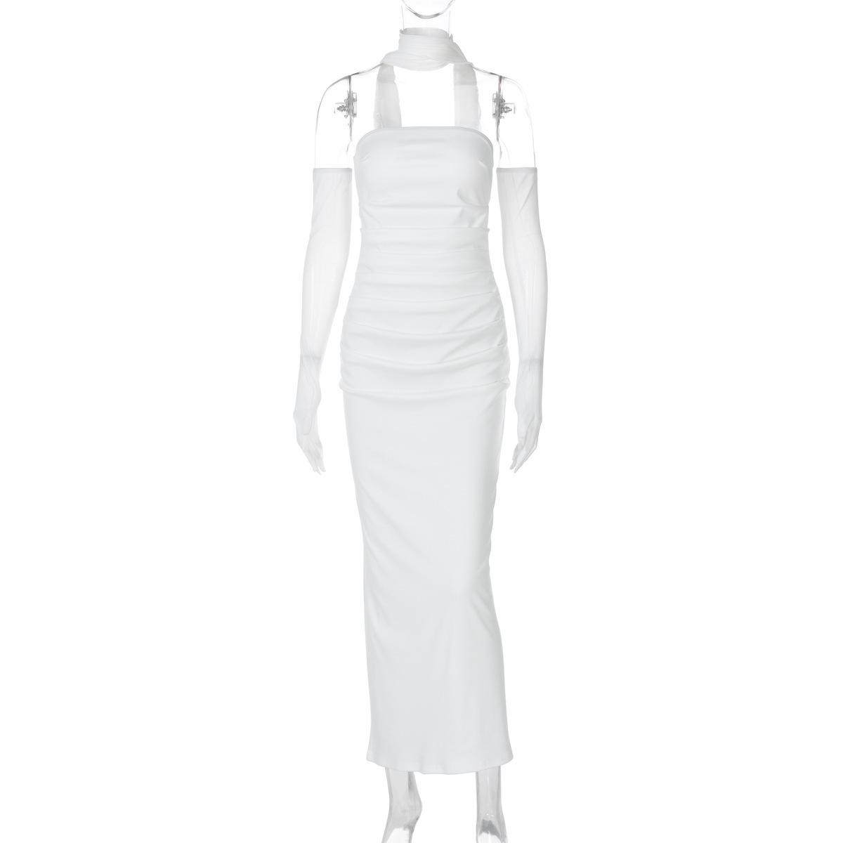 Vestido midi sexy amazônico, decote sem costas, cor sólida, justo, europeu e americano, transfronteiriço, vestido sem costas