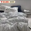 Ins Han Feng Conjunto de quatro peças de algodão puro, roupa de cama de algodão, capa de edredom, lençol, chapéu de cama, dormitório, conjunto de três peças simples, 4