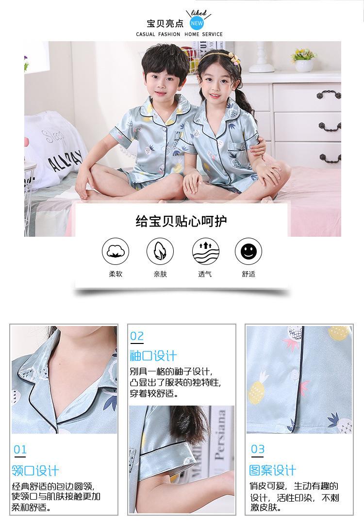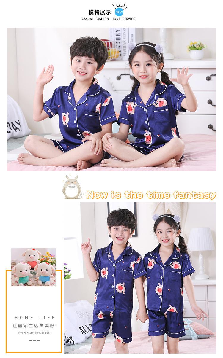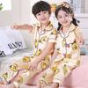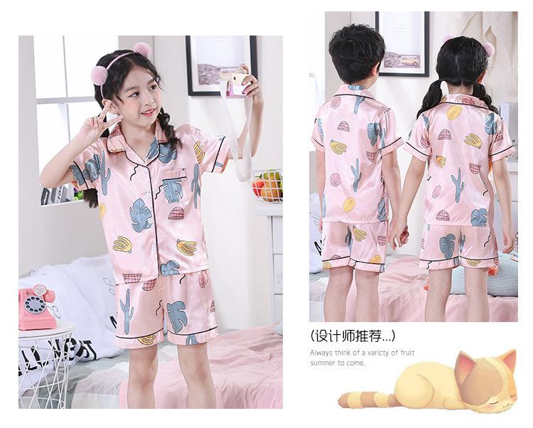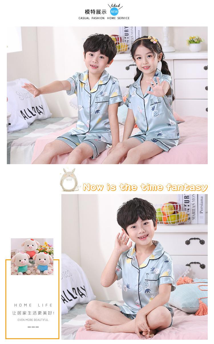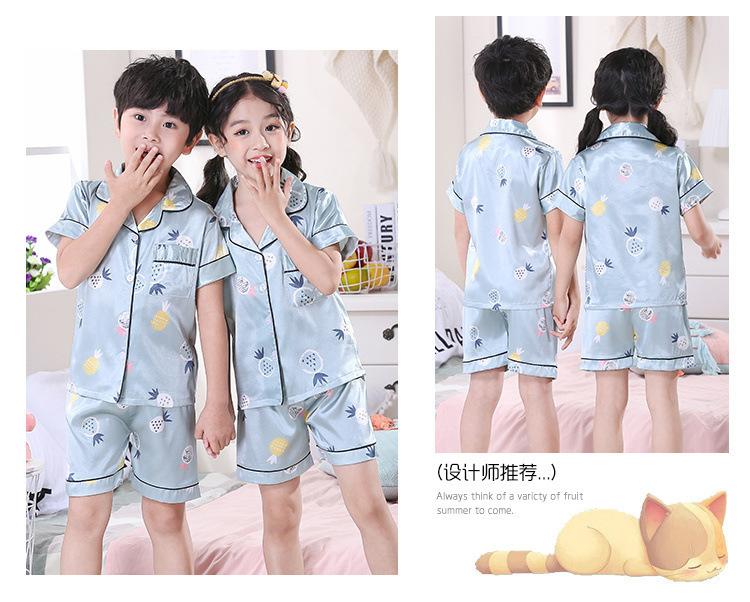 Pijamas infantis para meninos e meninas verão manga curta shorts fino gelo seda bebê pijamas infantis ar condicionado roupas de casa terno
