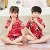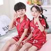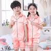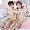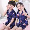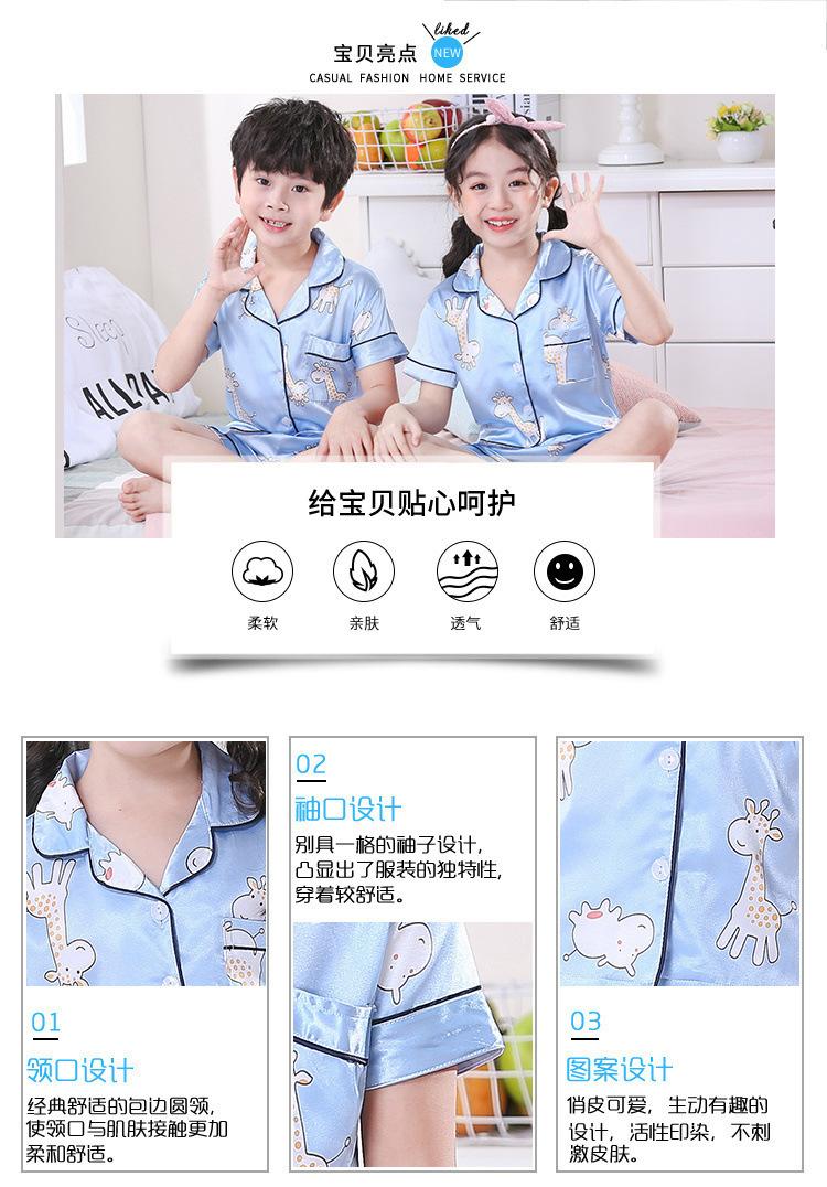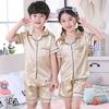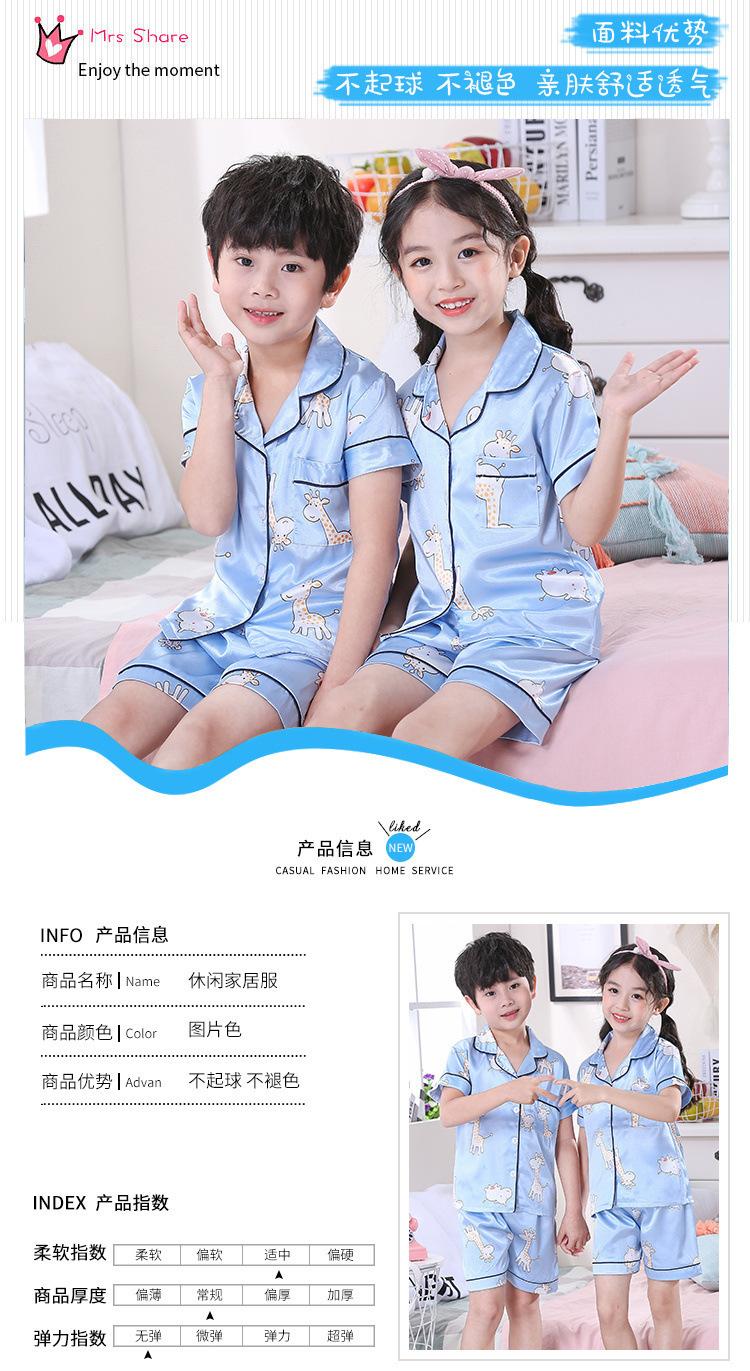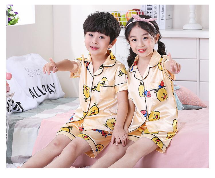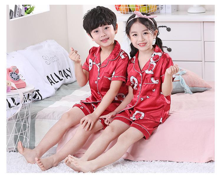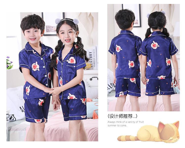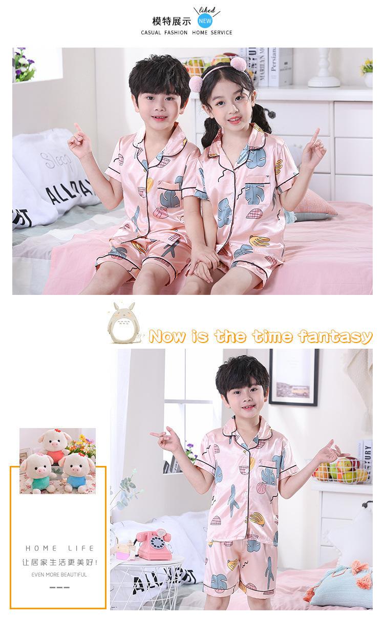Pijamas infantis para meninos e meninas verão manga curta shorts fino gelo seda bebê pijamas infantis ar condicionado roupas de casa terno