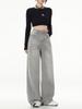 Calças jeans de design de nicho cinza ondulado femininas 2024 outono novo solto perna larga estilo preguiçoso estilo sal calças de rua