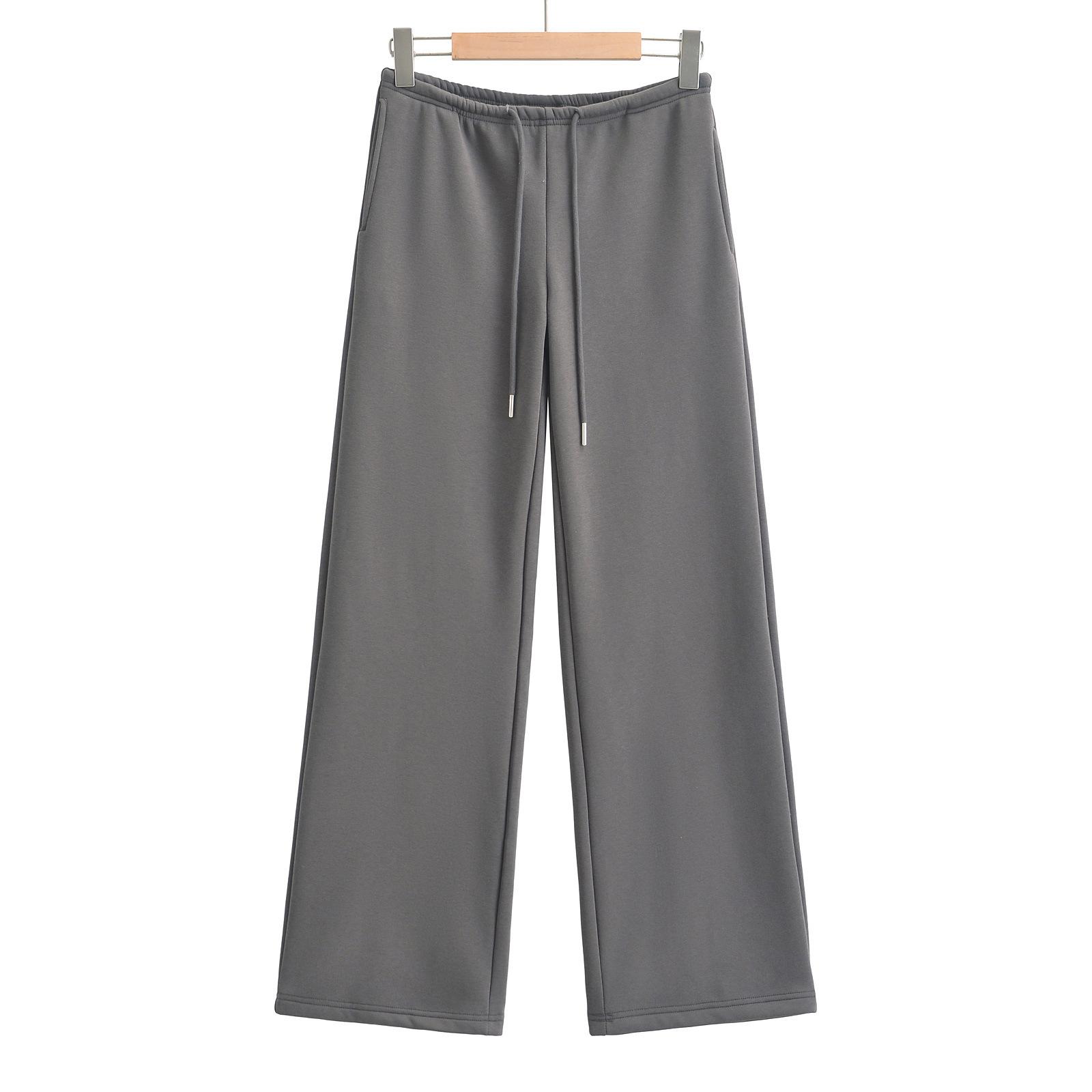 Calças esportivas soltas com cordão para festa de rua, femininas, outono, cintura baixa, emagrecimento, casual, reta, forrada de lã, calças largas