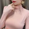 Outono e Inverno 2024 Tops Estilo Coreano Camiseta de Manga Comprida Pequeno Fragrante Veludo Dourado Gola Alta Metade Camisa Básica para Mulheres
