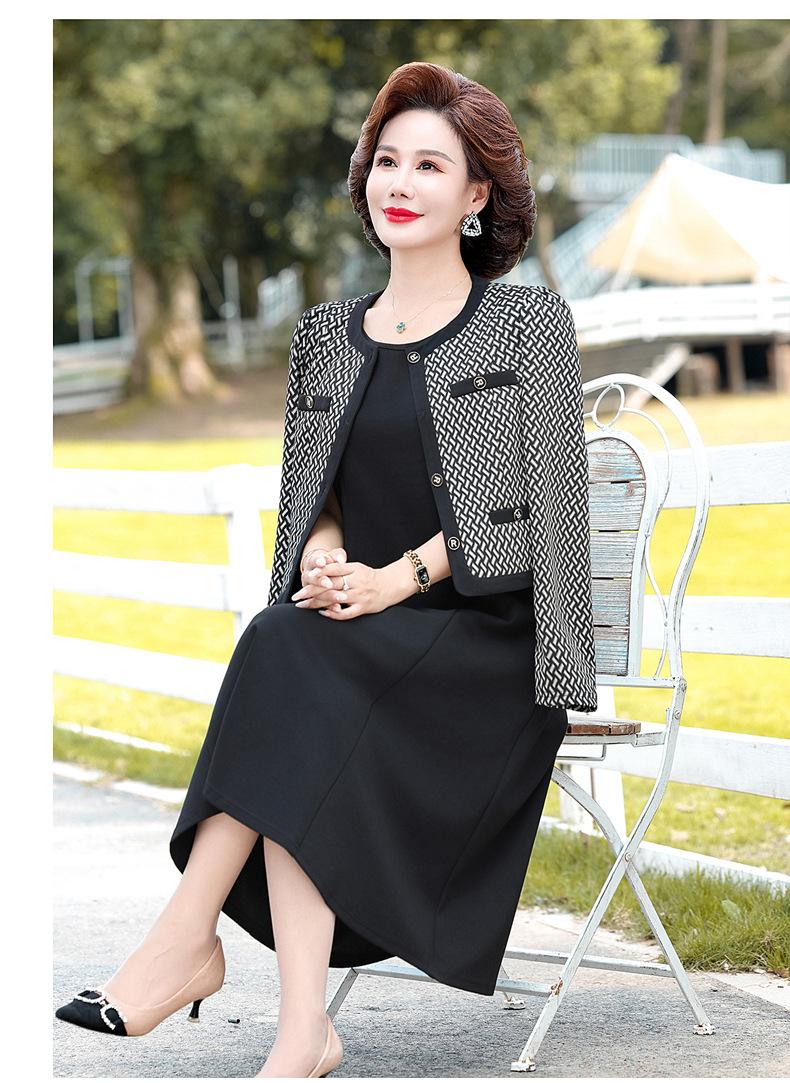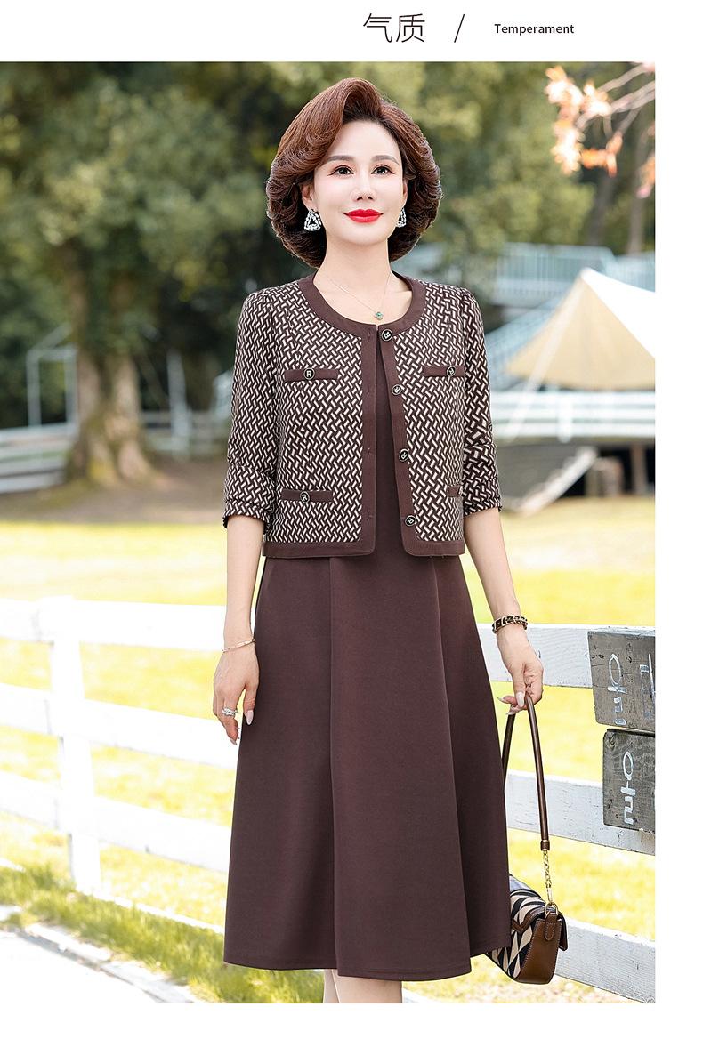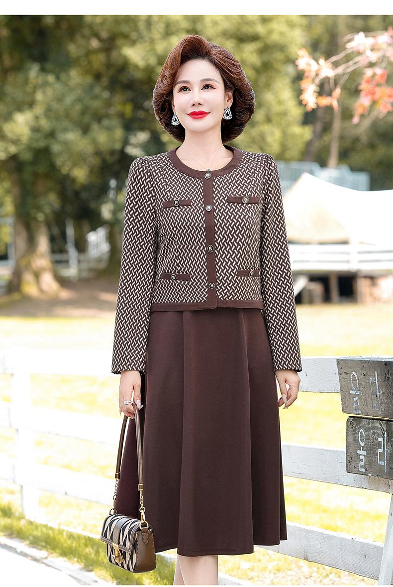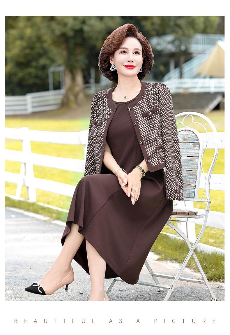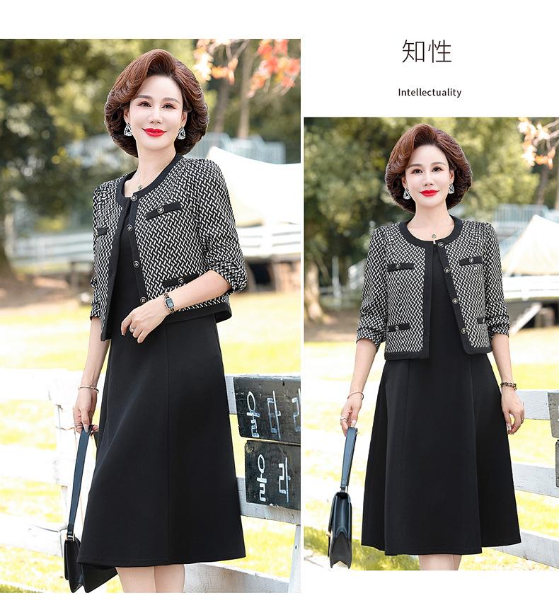 Terno de vestido de primavera para mulheres de meia-idade e idosas, top curto, elegante, moda plus size, vestido de mãe, saia, conjunto de duas peças