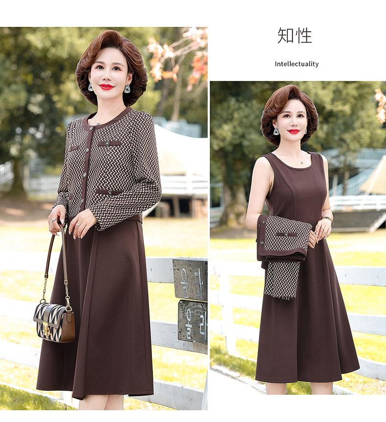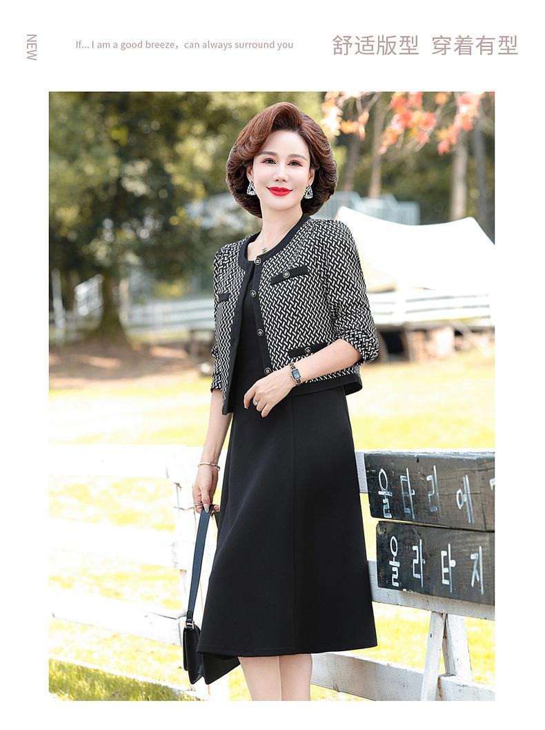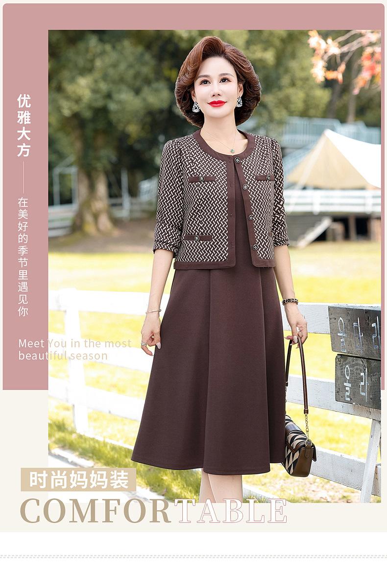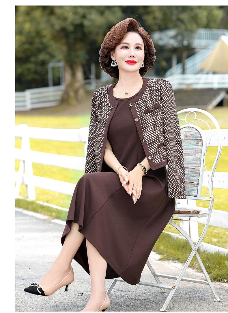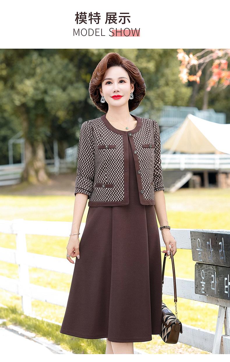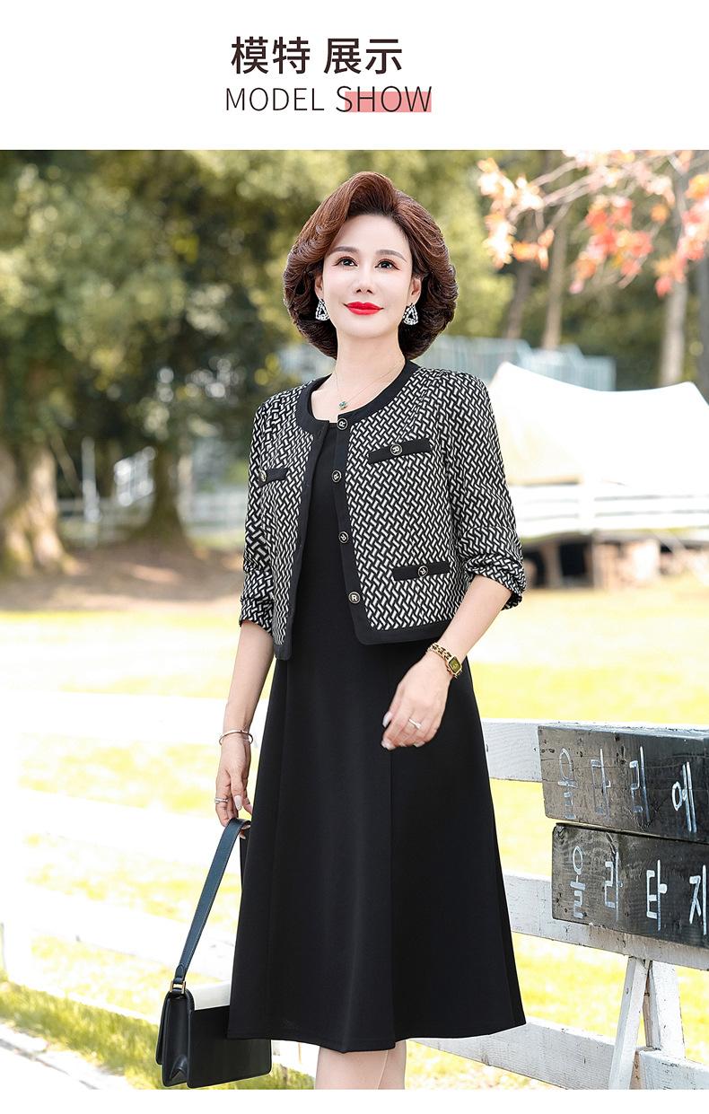Terno de vestido de primavera para mulheres de meia-idade e idosas, top curto, elegante, moda plus size, vestido de mãe, saia, conjunto de duas peças