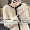 100 Suéter de lã pura feminino outono e inverno suéter curto com flores torcidas cardigan cor combinando gola polo falsa de duas peças suéter de manga comprida