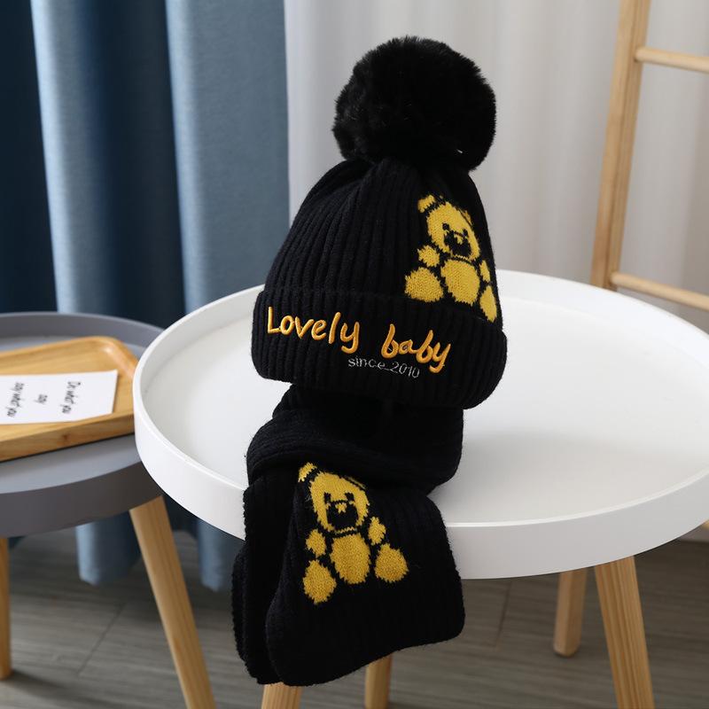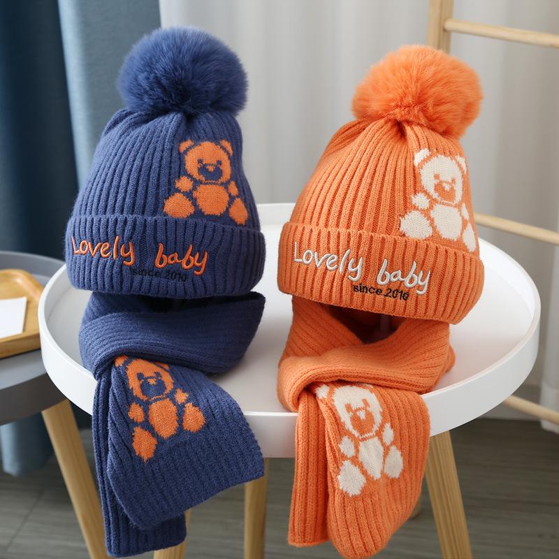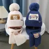 Outono e inverno infantil chapéu cachecol duas peças terno quente lã chapéu bonito urso bebê bebê malha chapéu moda