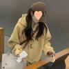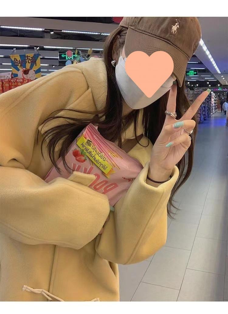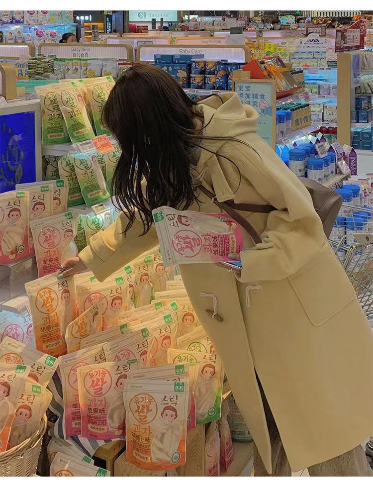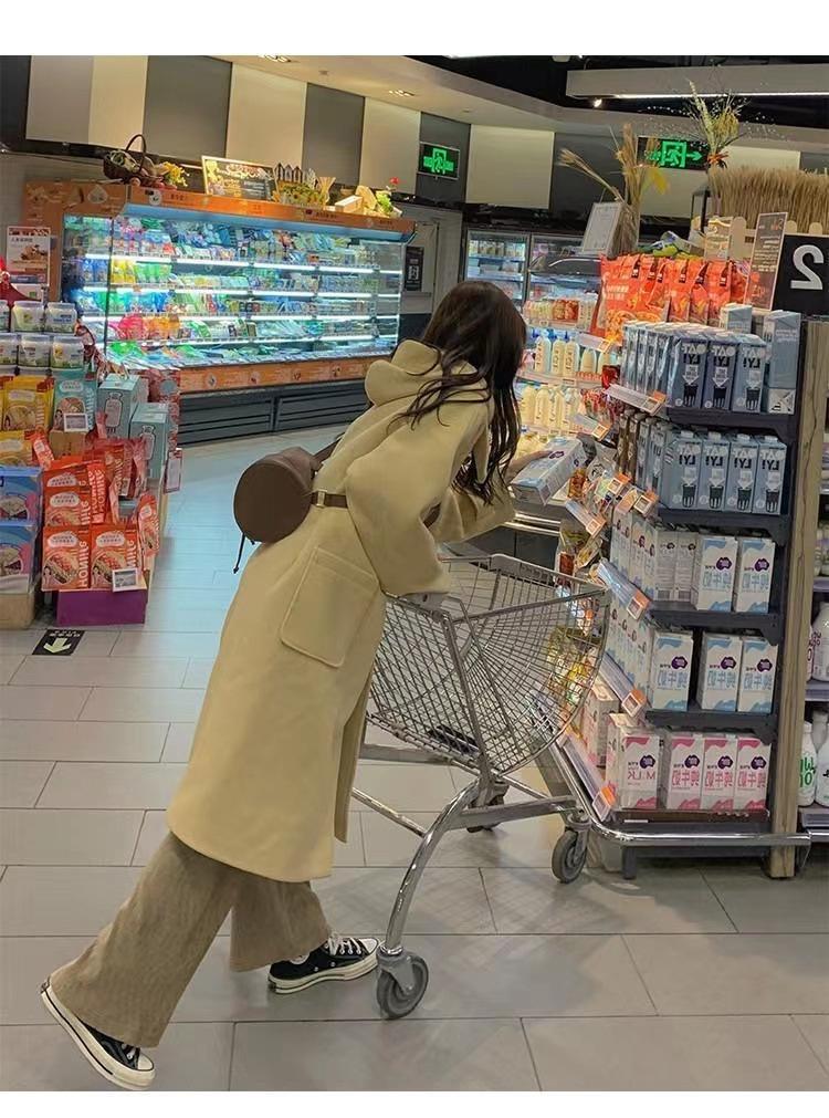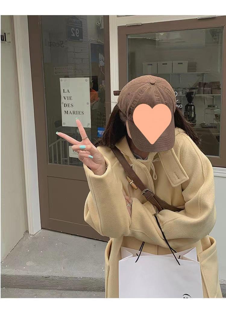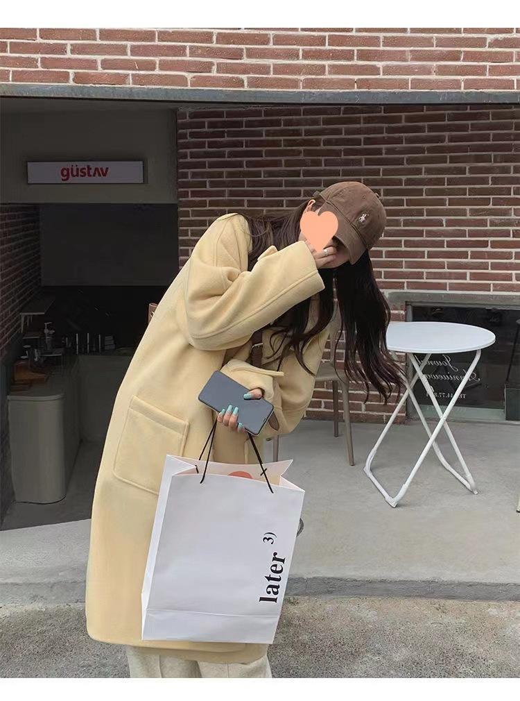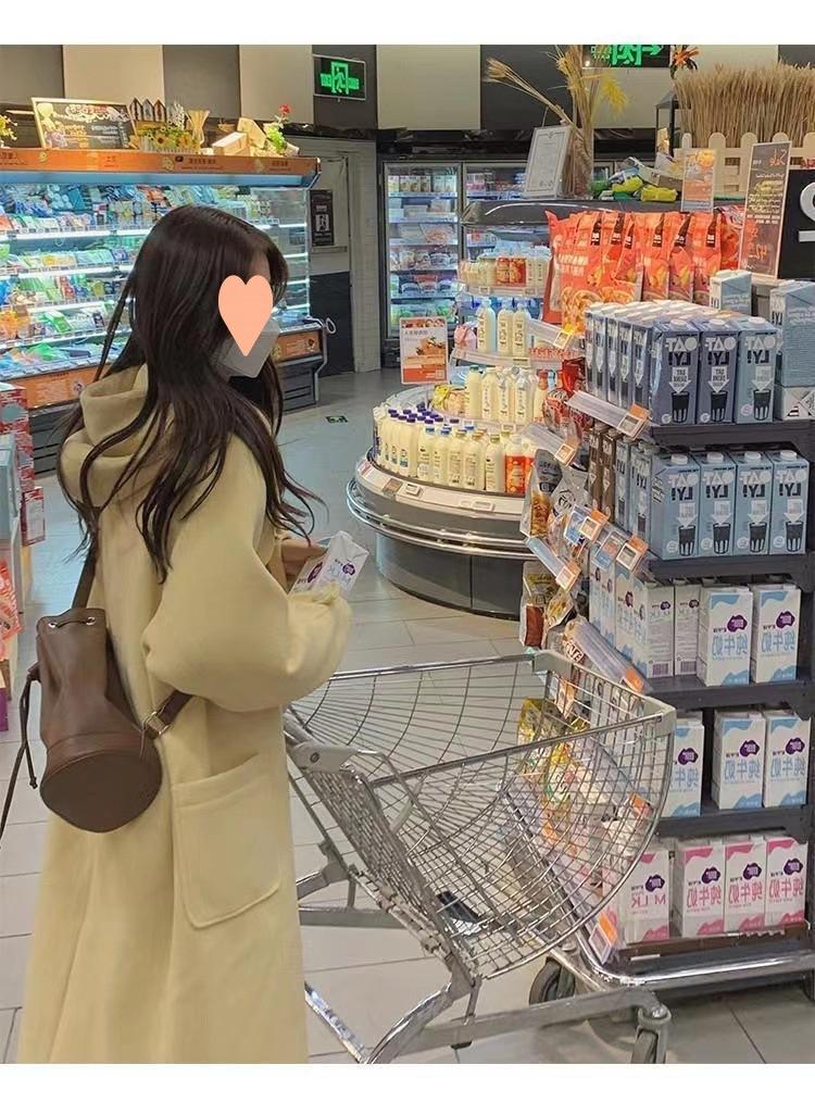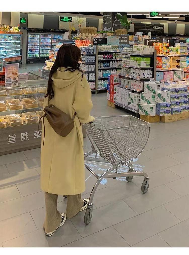 2025 Novo Outono e Inverno Casaco de Lã Feminino Estilo Médio Tendência Casaco de Lã com Capuz e Botão de Chifre