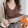 Colete feminino quente forrado de lã, grosso, inverno, com bojo, renda, decote em V, camisa básica, roupa íntima, moderna