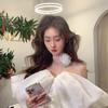 Suéter Personalizado Preto e Branco Redutor de Idade Bordado à Mão com Miçangas Estilo Coreano Decorado com Gola Redonda, Gola Falsa Fashion e Versátil