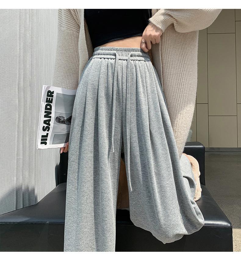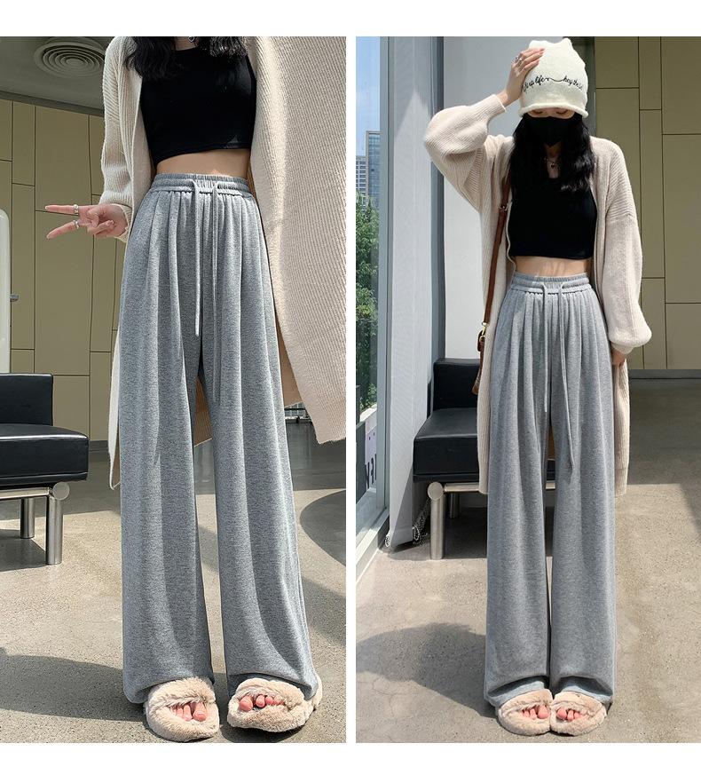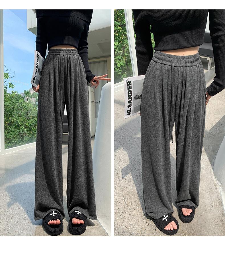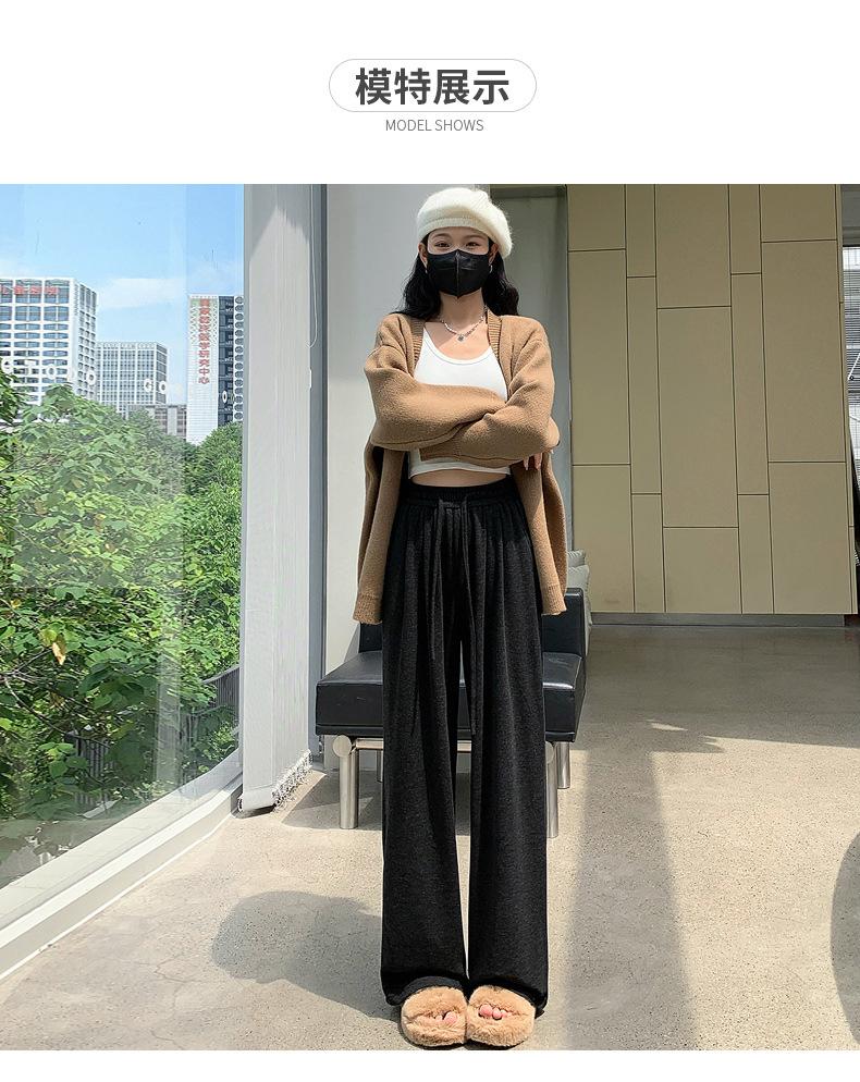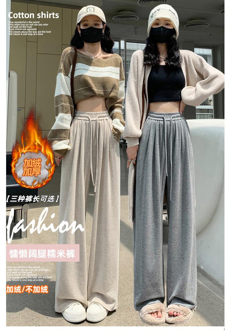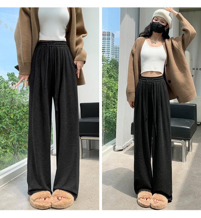Inverno 2025 Glutinous Rice Calças de perna larga femininas Novas calças casuais de cintura alta Calças de malha estilo preguiçoso