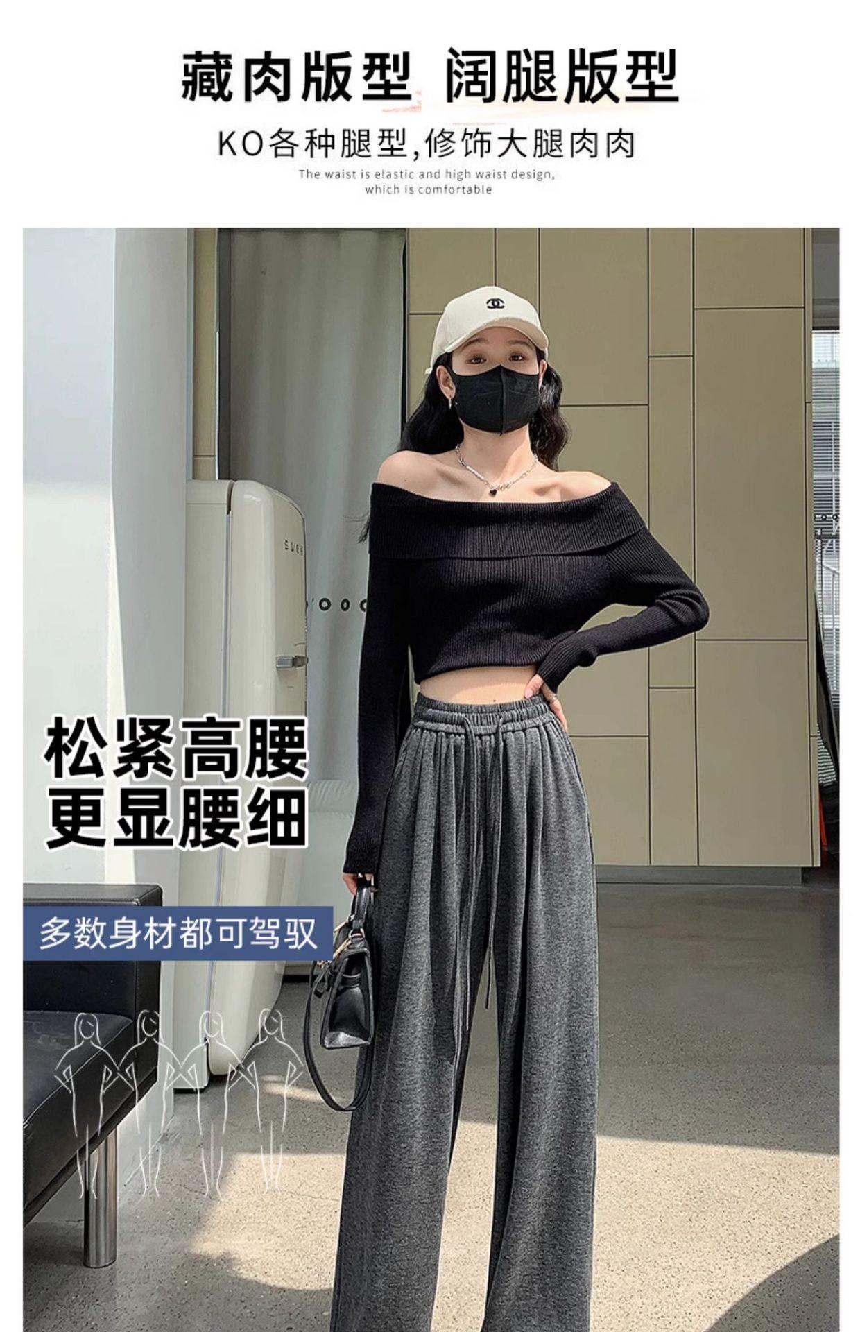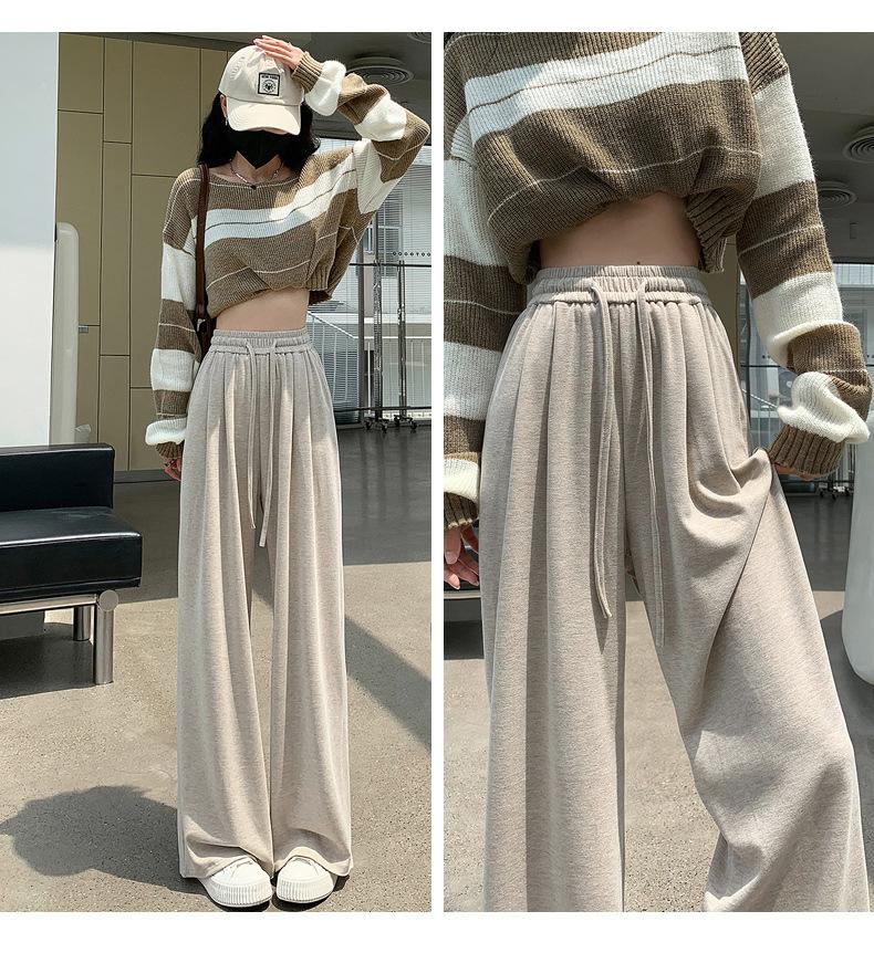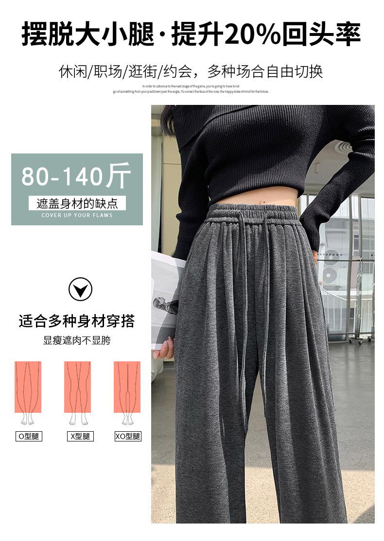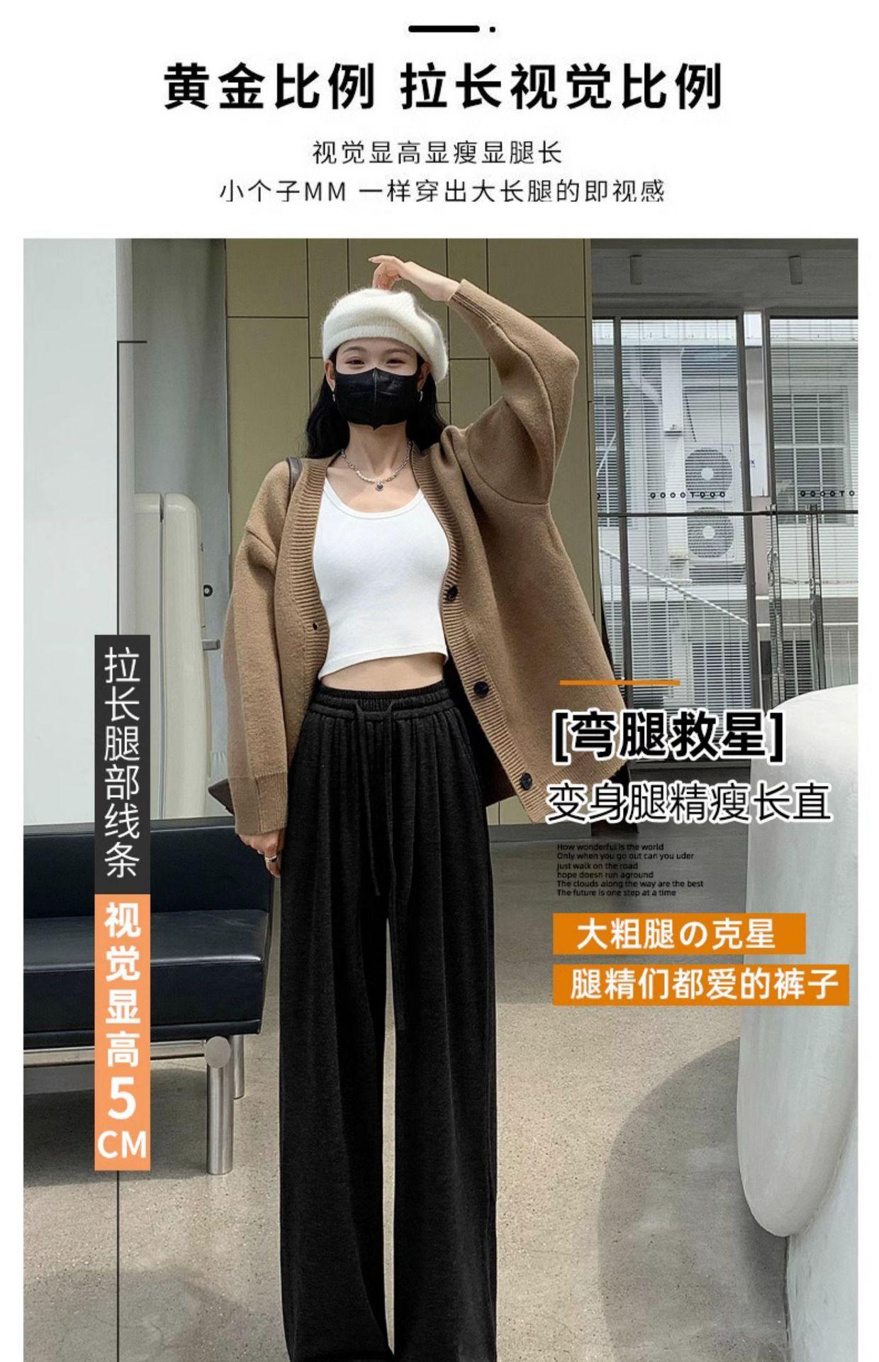 Inverno 2025 Glutinous Rice Calças de perna larga femininas Novas calças casuais de cintura alta Calças de malha estilo preguiçoso