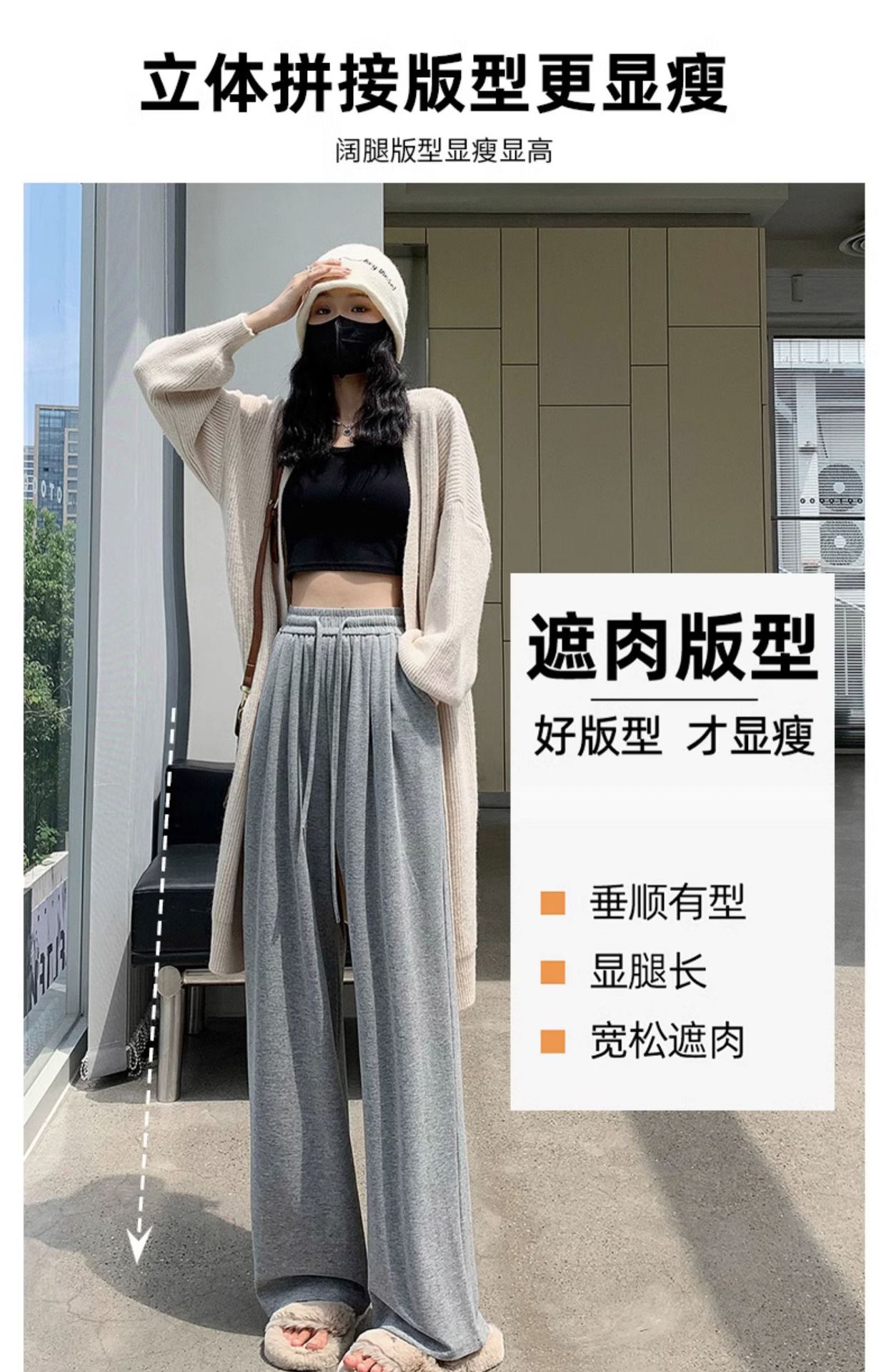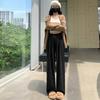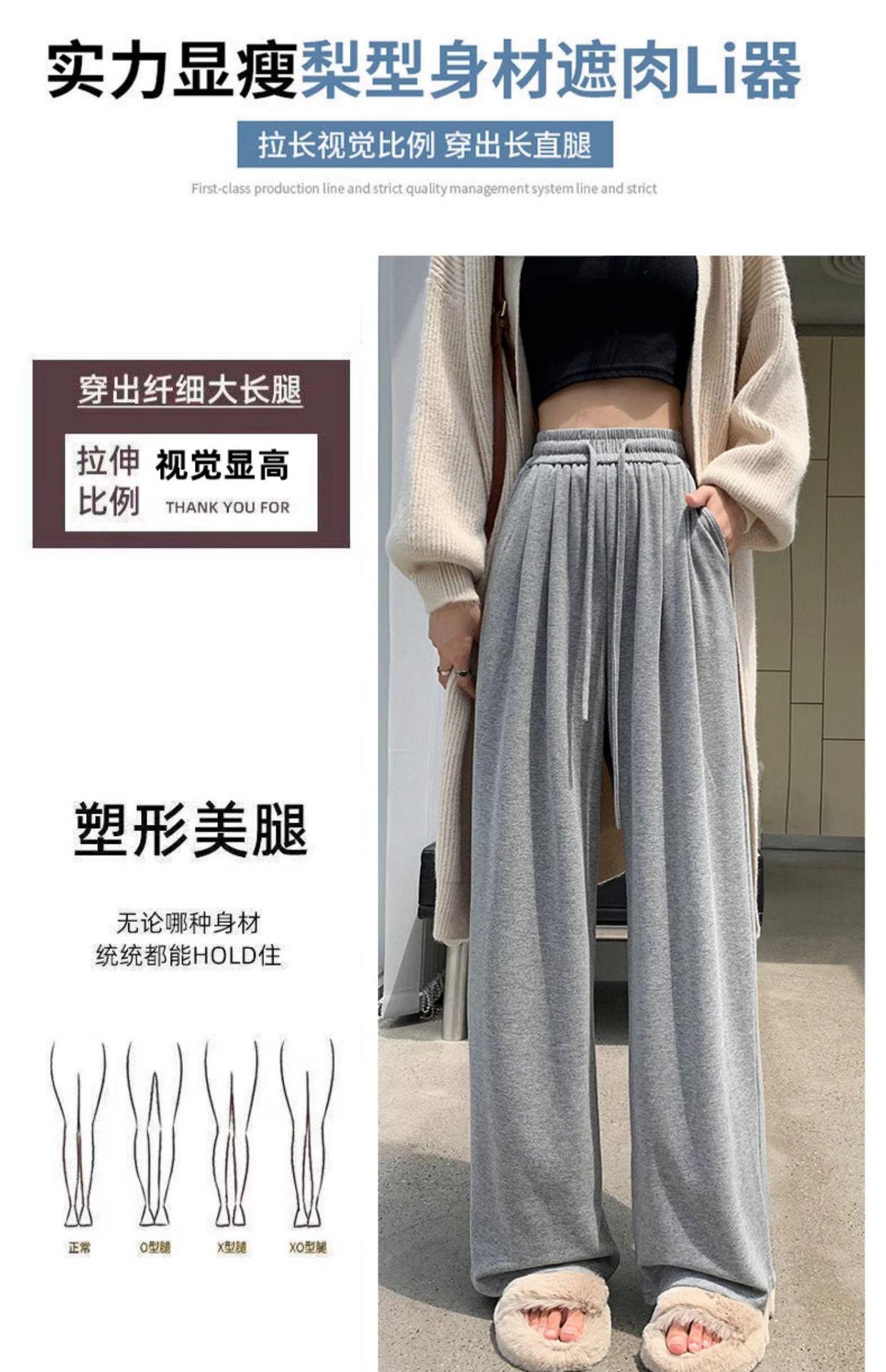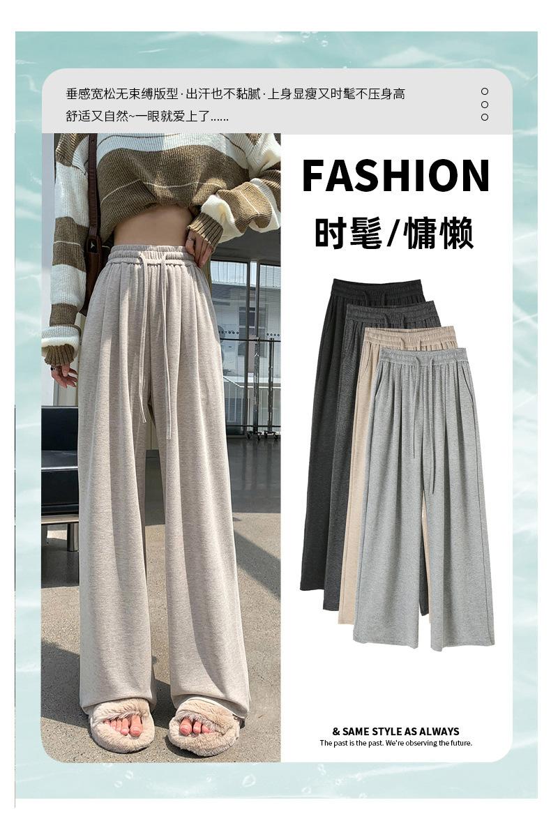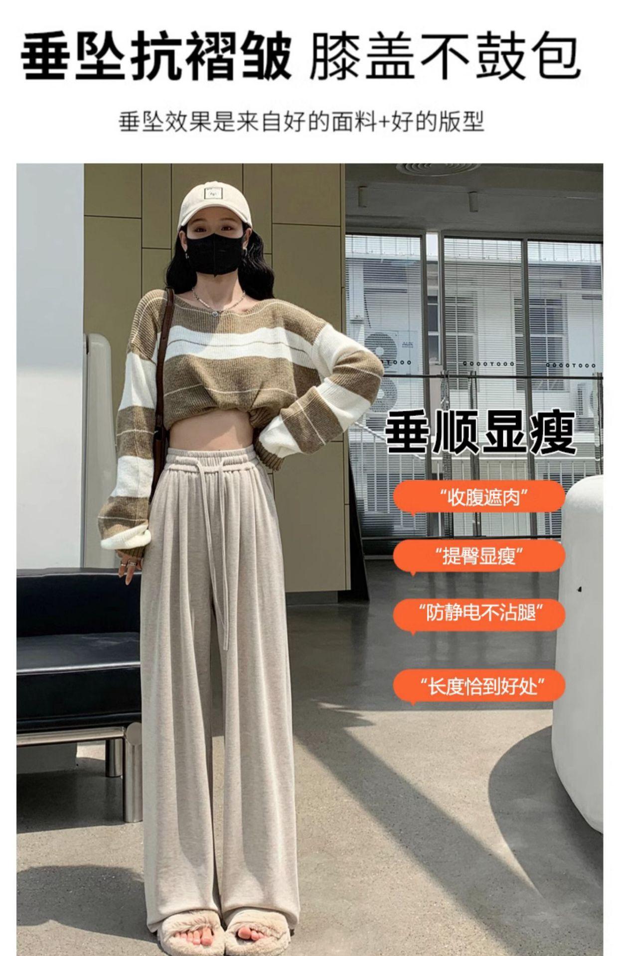 Inverno 2025 Glutinous Rice Calças de perna larga femininas Novas calças casuais de cintura alta Calças de malha estilo preguiçoso