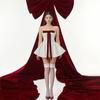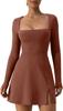 Amazon Transfronteiriço Roupas Europeias e Americanas Femininas Decote Quadrado Corset Manga Longa Fenda Evasê Mini Vestido