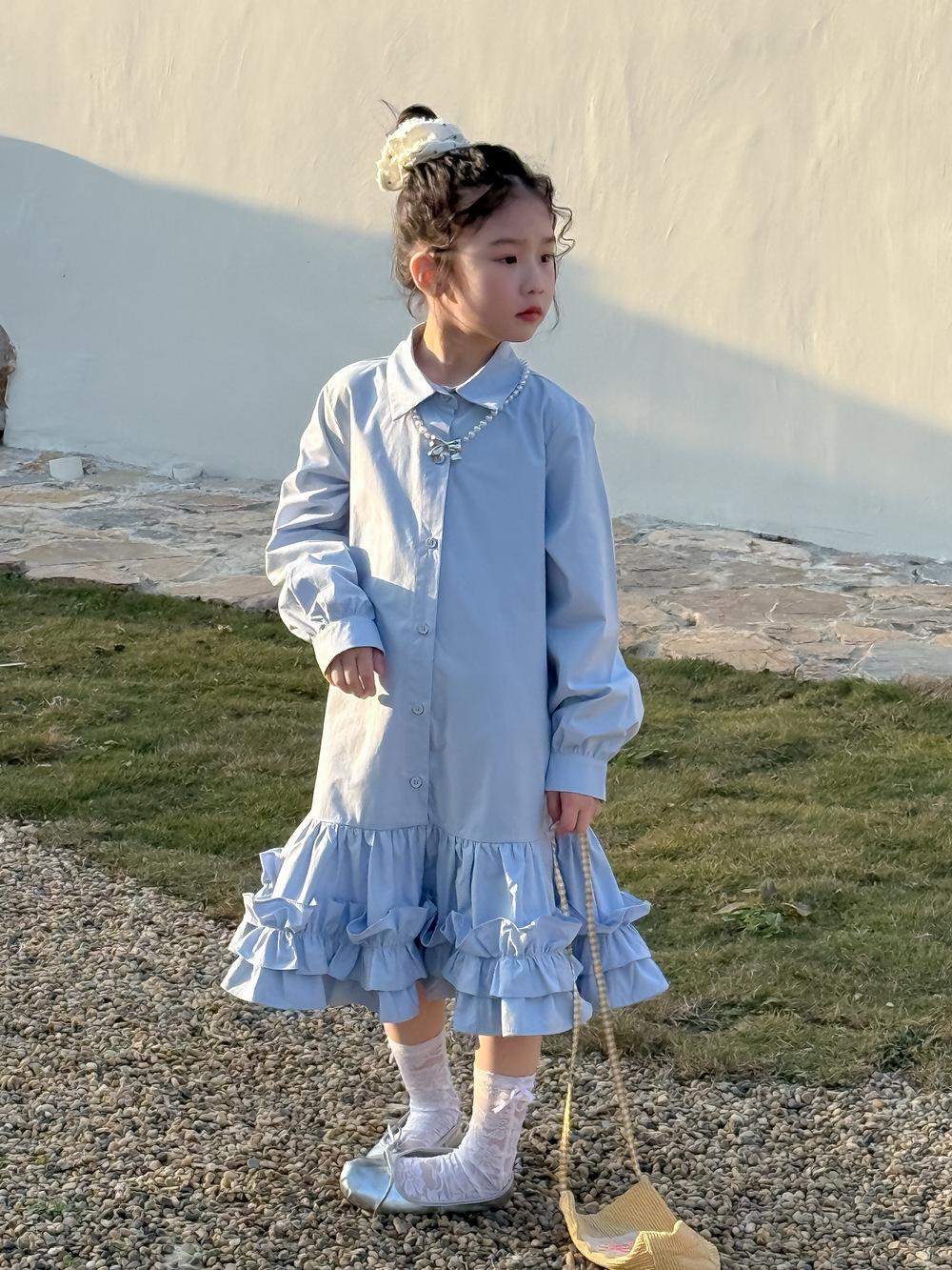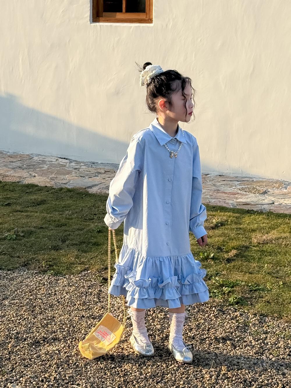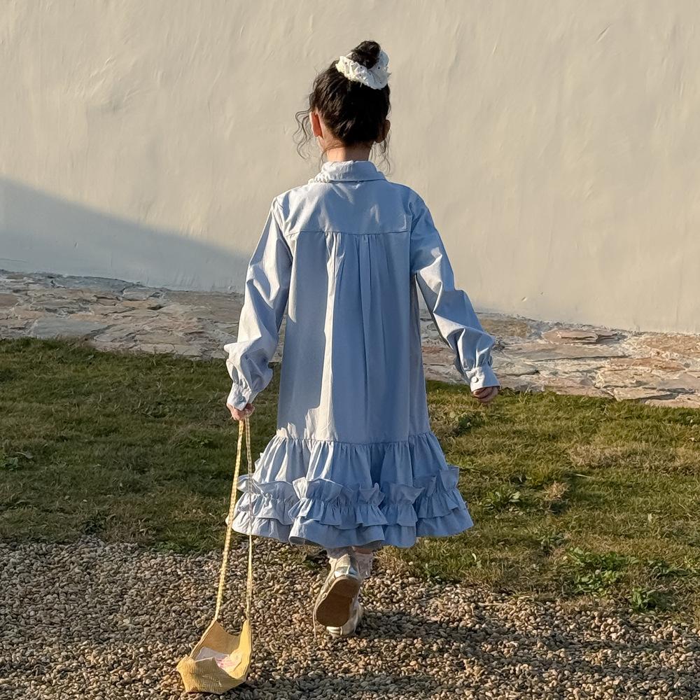 Vestido infantil 2025 primavera feminino bebê coreano renda camisa colarinho vestido infantil casual estilo ocidental vestido longo