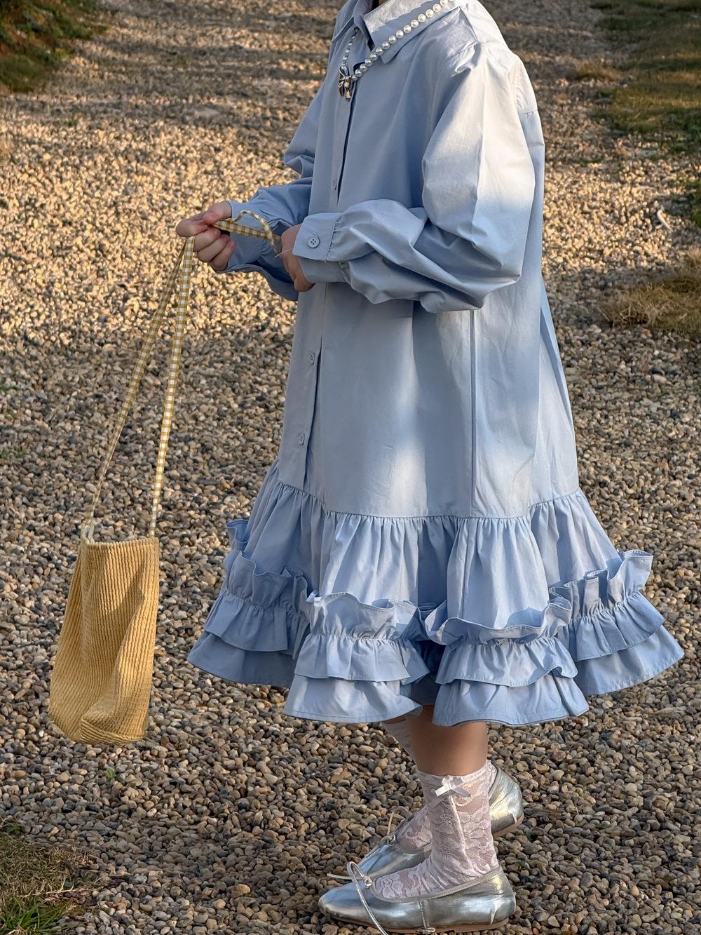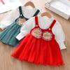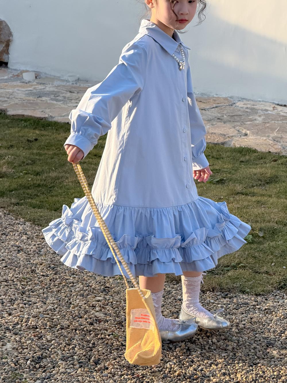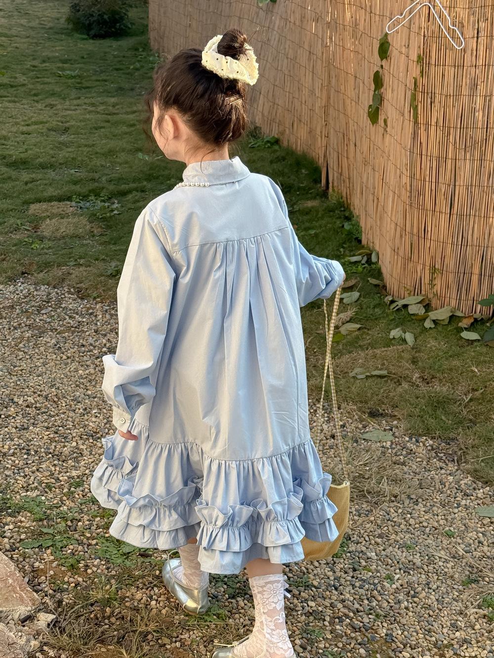 Vestido infantil 2025 primavera feminino bebê coreano renda camisa colarinho vestido infantil casual estilo ocidental vestido longo