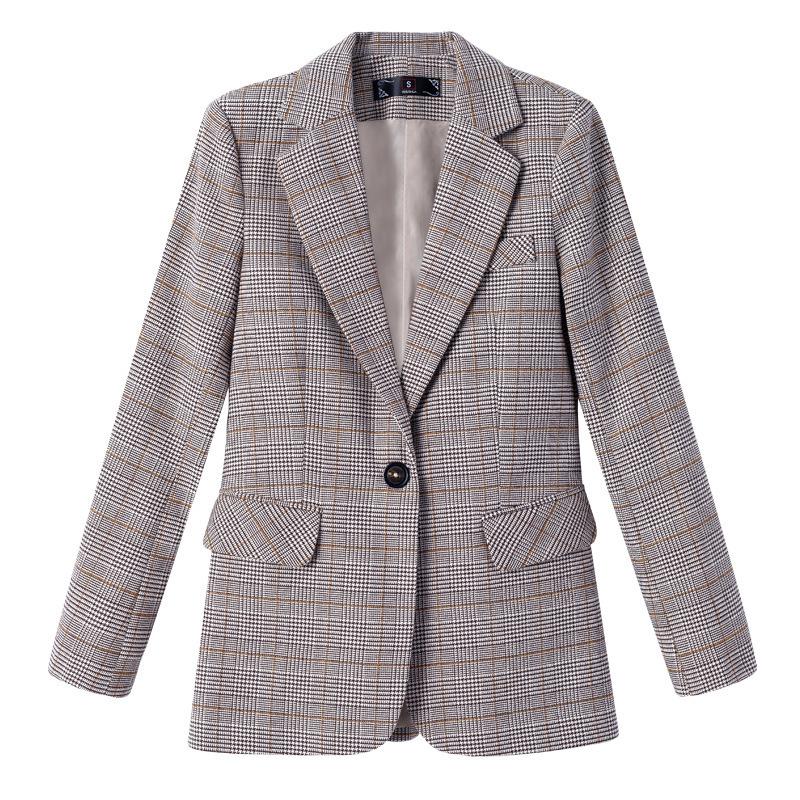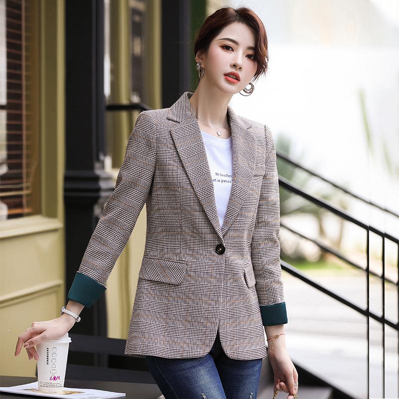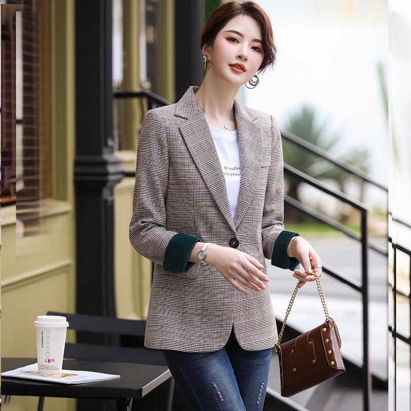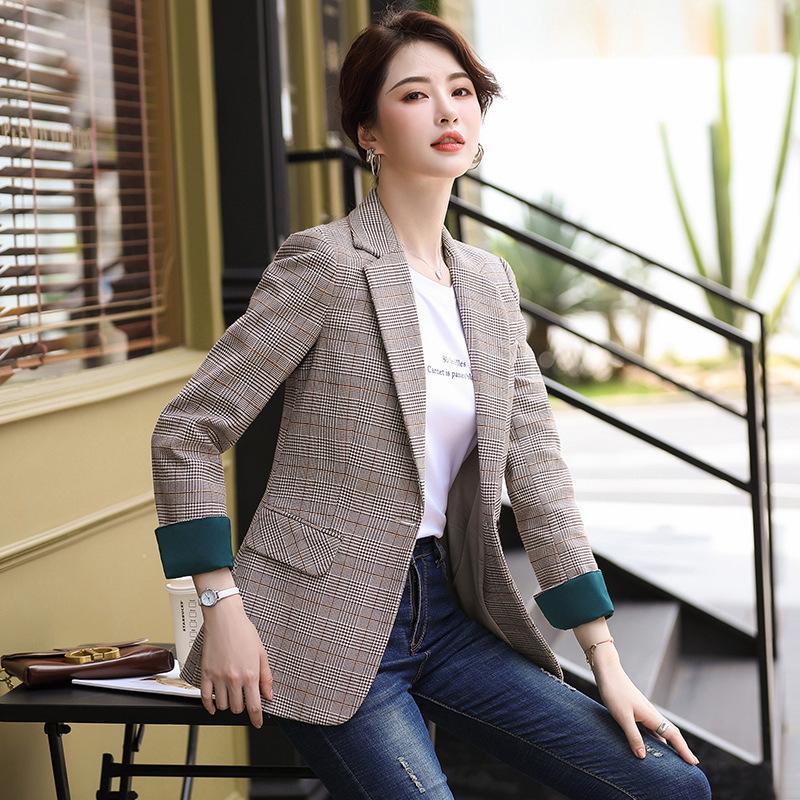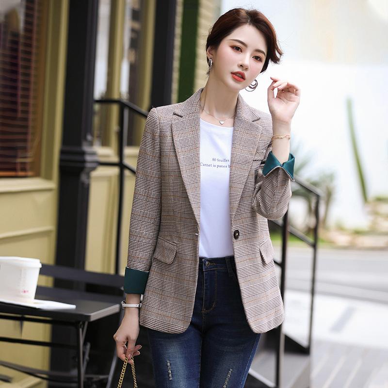Internet Popular Xadrez Pequeno Terno Jaqueta Feminina Primavera e Outono Estilo Coreano Estilo Britânico Slim-fit Slimming Elegante Casual Pequeno Terno Top