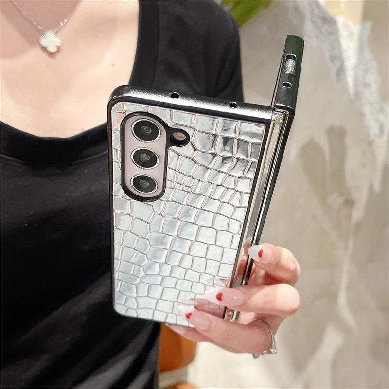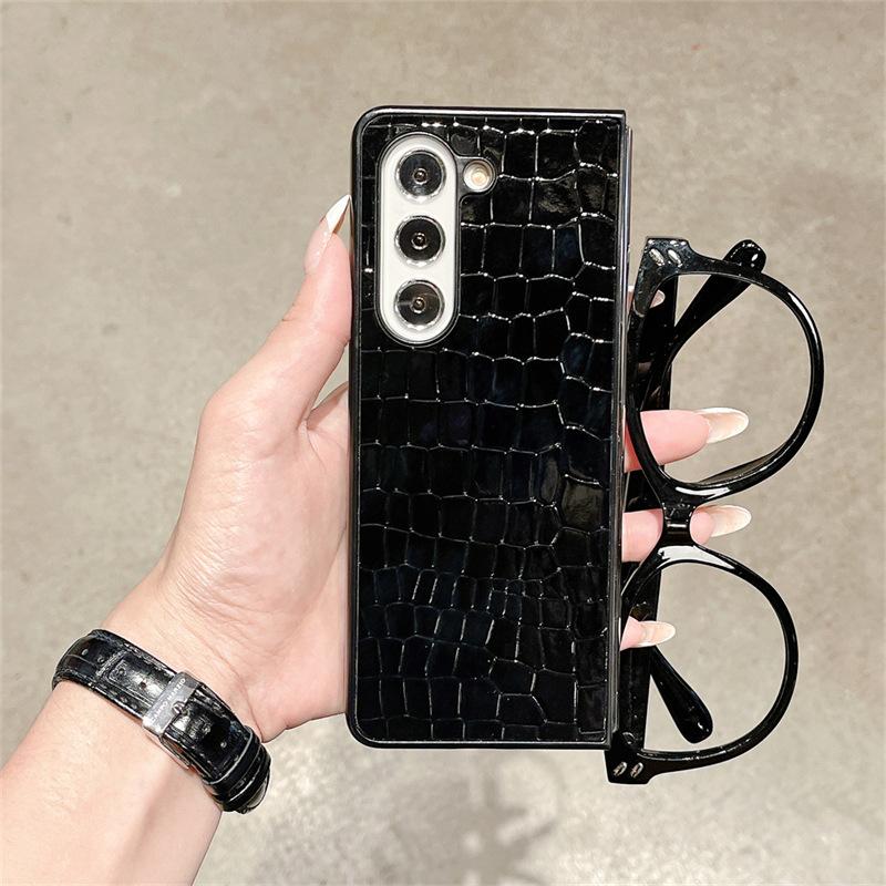 Para Samsung ZFlip6 capa de telefone com estampa de crocodilo zflip5 tela dobrável capa traseira rígida zflip4 capa protetora