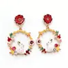 Mengyuan versão coreana de brincos de coelho fofos de prata S925 mulheres esmalte diamante brincos de flores frescas fabricantes atacado