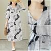 Real Shot 2024 Verão Novo Artístico Solto Cor Sólida Algodão Linho Decote Em V Vestido de Manga Curta Feminino Cintura Média