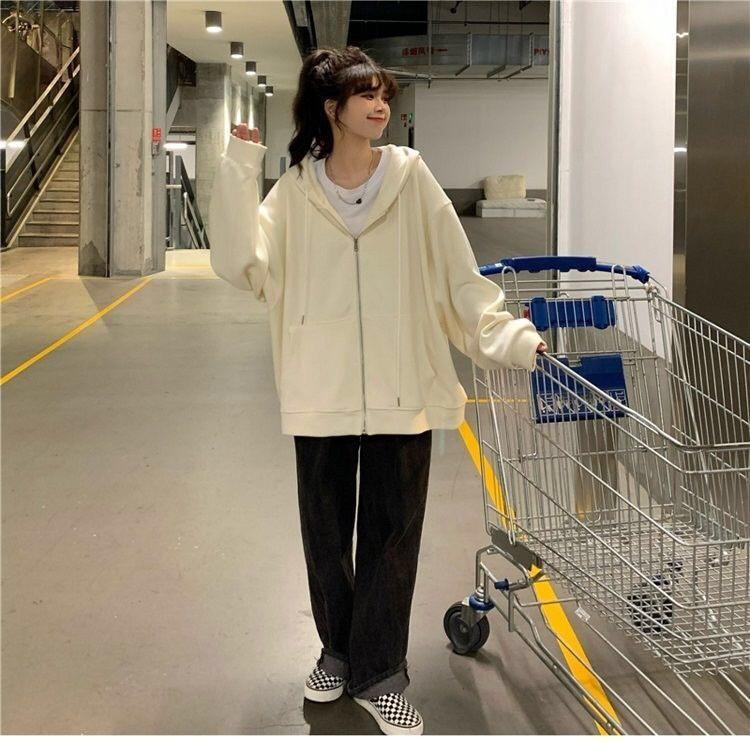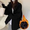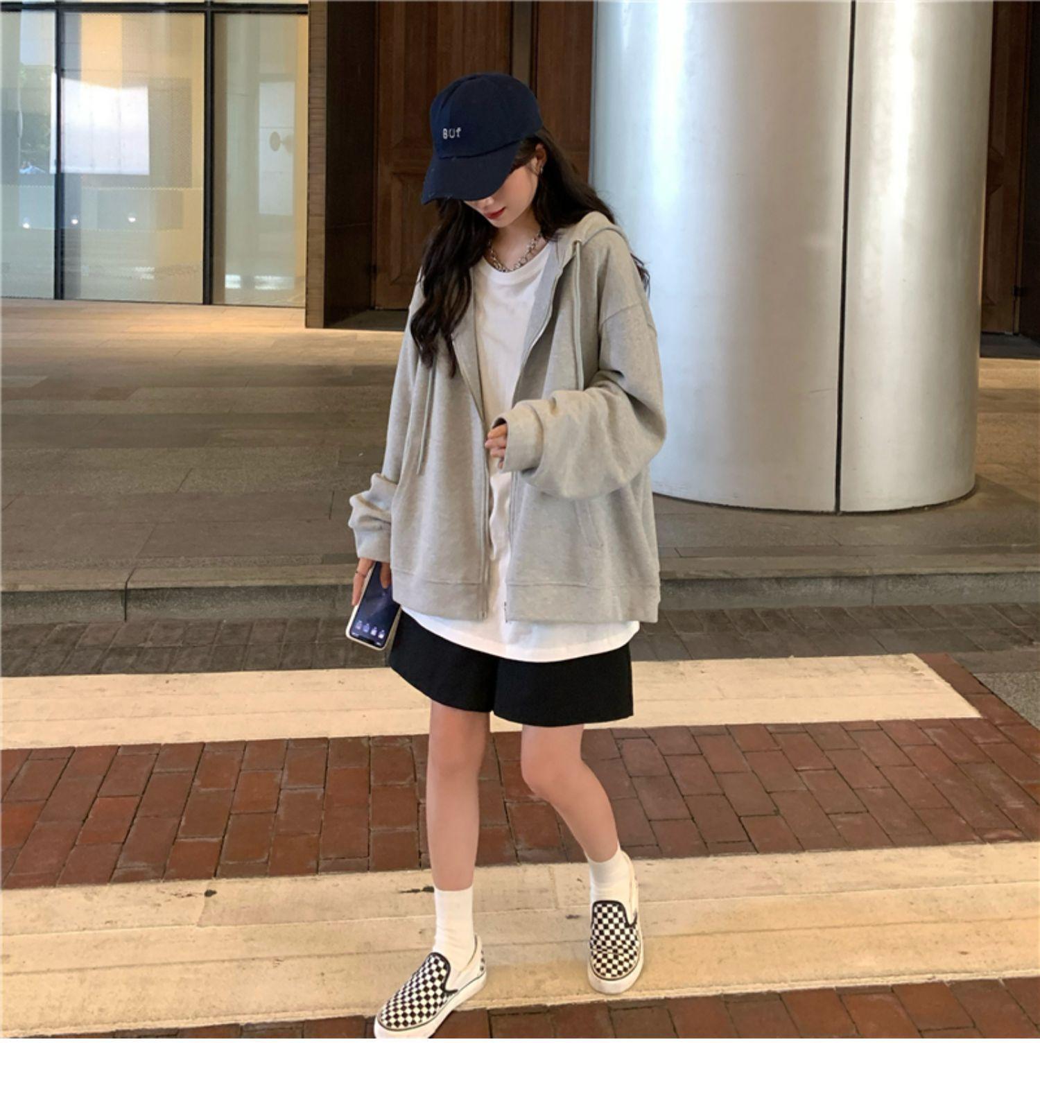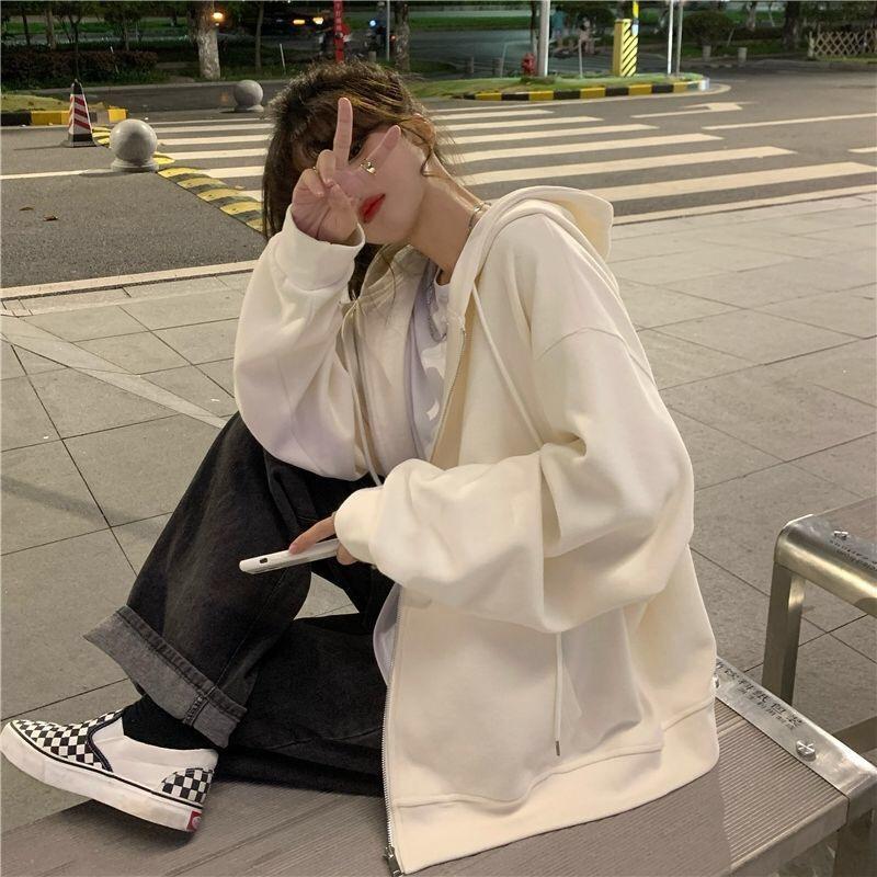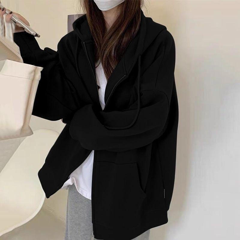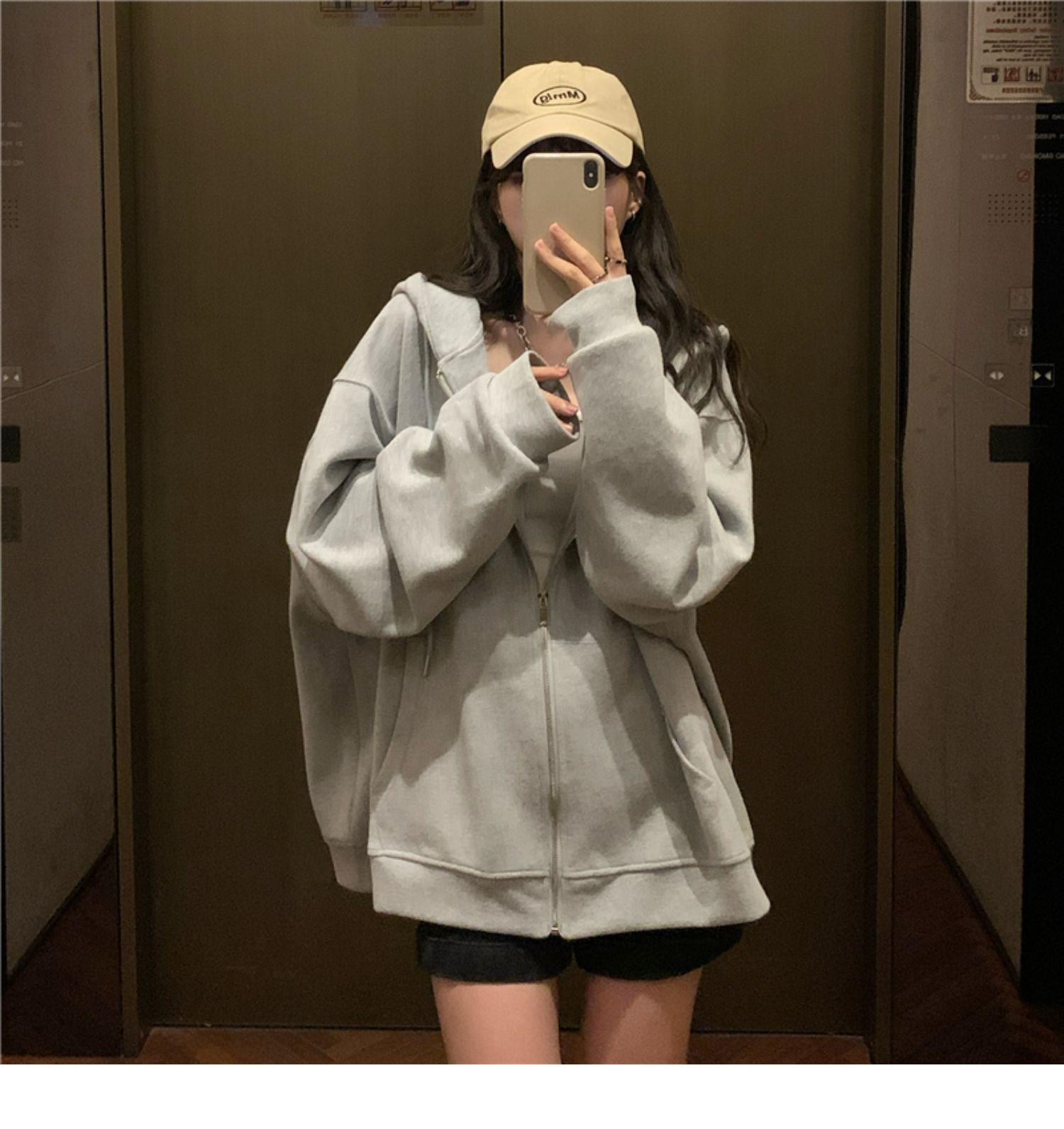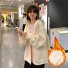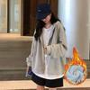 Suéter com zíper espesso forrado de lã com capuz 2025 novo outono e inverno feminino estilo Hong Kong cor sólida estudante manga longa casaco atacado