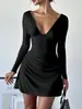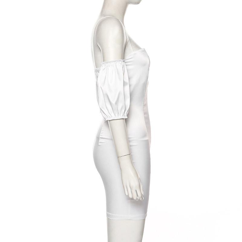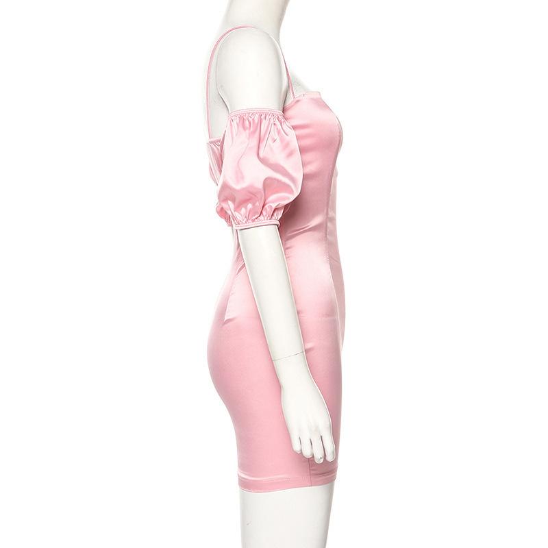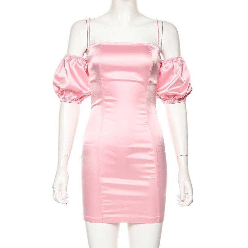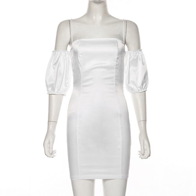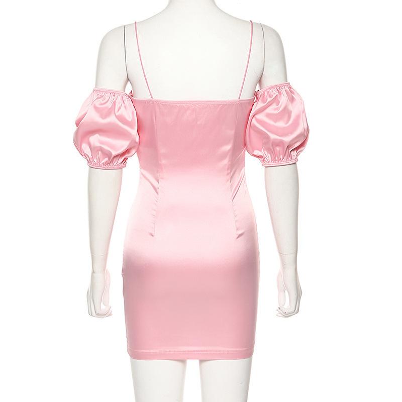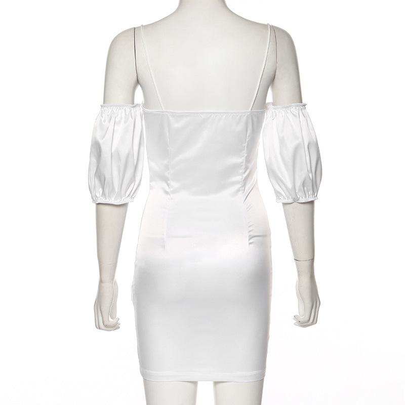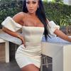 Em estoque Moda Europeia e Americana Manga Lanterna Alça Gola Curta Bolsa Quadril Vestido Sexy Sem Costas Vestido Slim-Fit Roupas Femininas