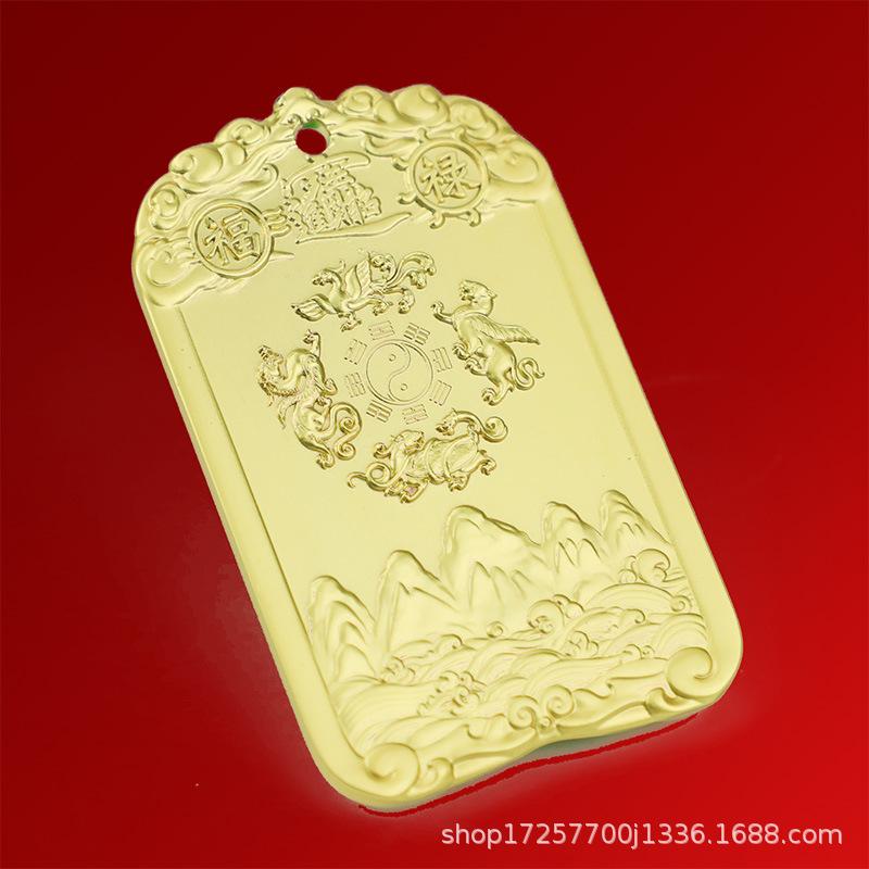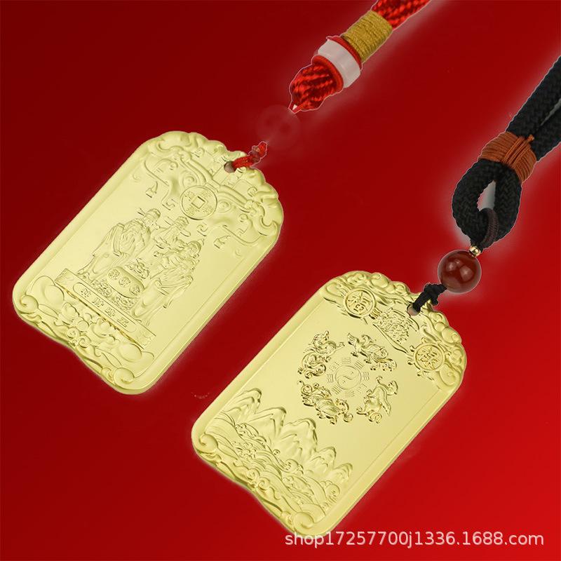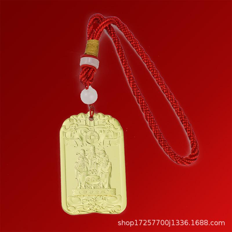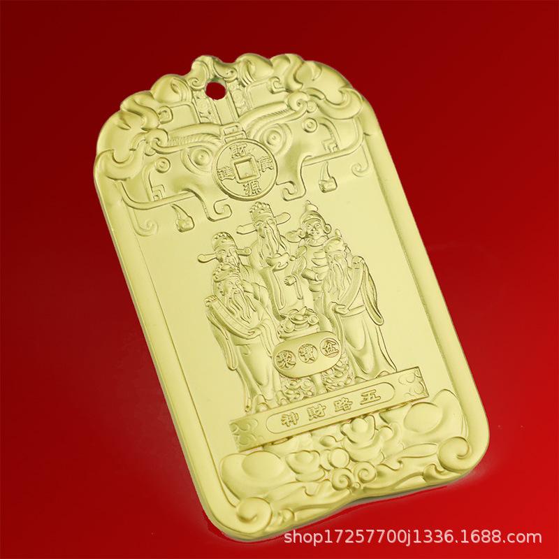 Pingente de símbolo do Deus da Riqueza de cinco vias Placa de cintura Placa de metal esculpida para pendurar oração Placa de bronze antigo Colar de pingente de símbolo Fabricantes