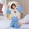 Pijama de inverno para meninas, lã coral, flanela jacquard espessada, desenho animado, cachorro Yugui, cardigan para crianças de médio e grande porte, conjunto de roupa para casa