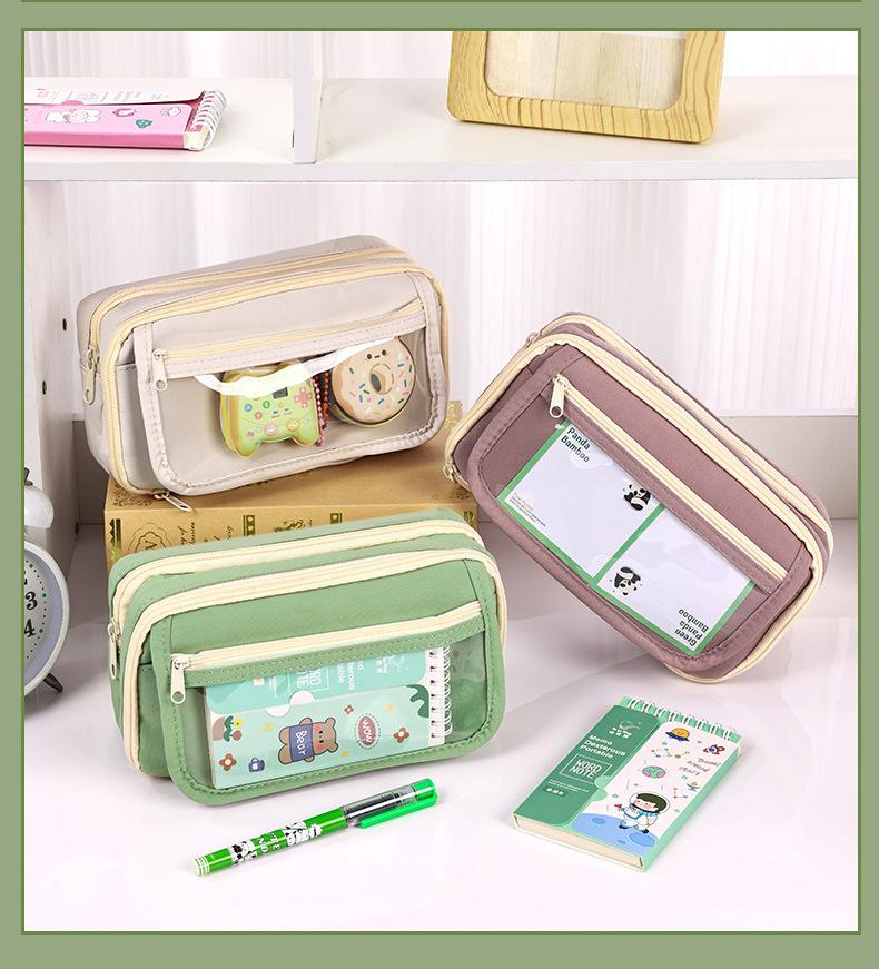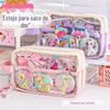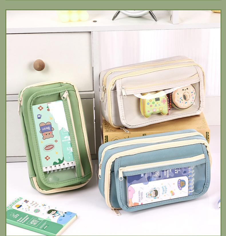 Estojo para lápis Flip Bolsa para lápis de grande capacidade Escola primária Multifuncional Transparente Bolsa para lápis Bolsa para lápis de alta cor Bolsa de malha Flip para artigos de papelaria