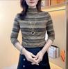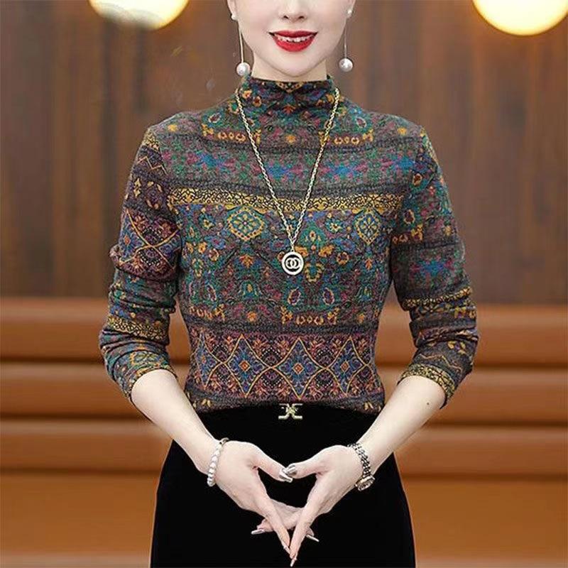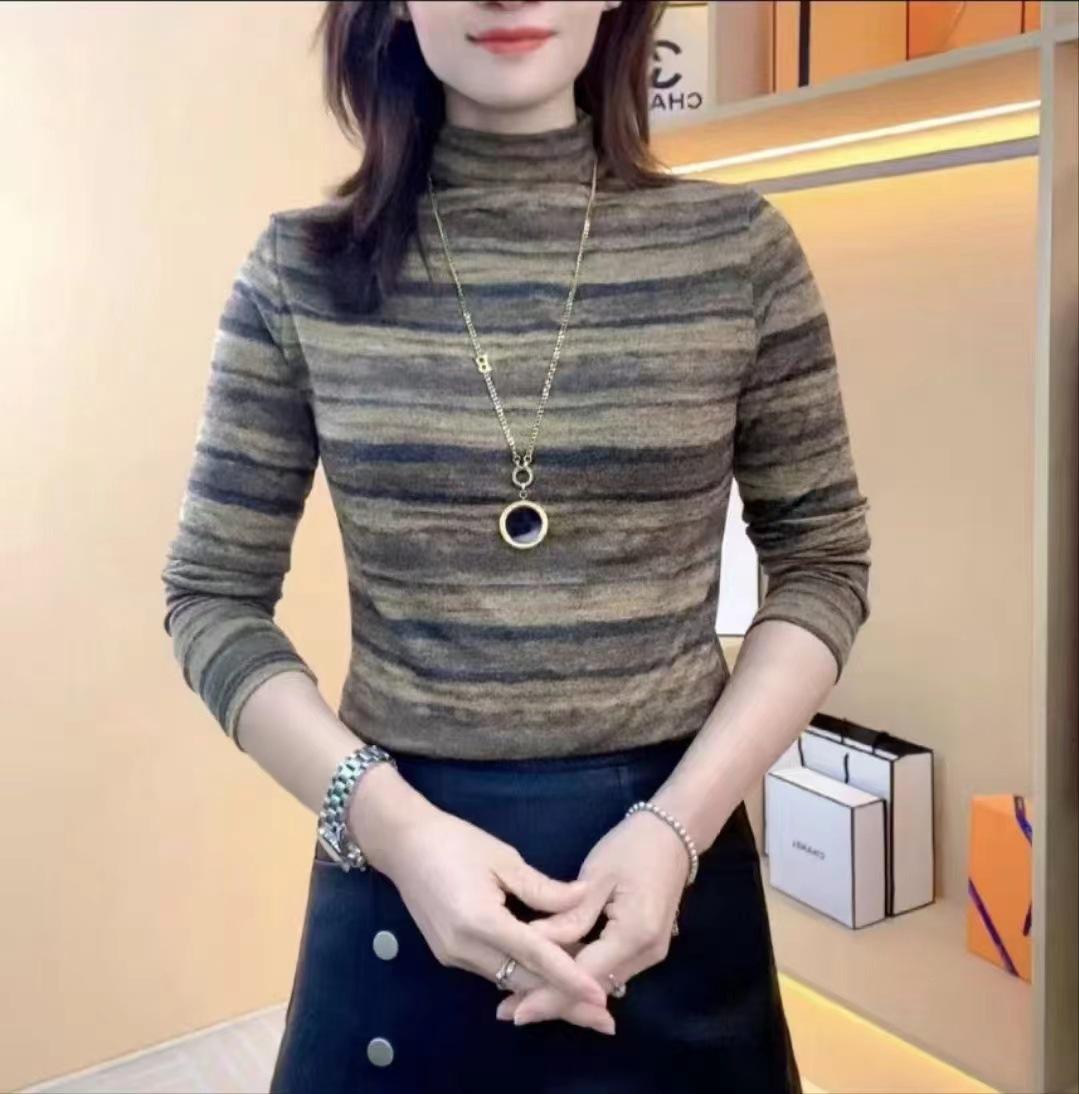2024 Outono e Inverno Nova Moda Gola Meia Alta Elegante Elegante All-match Slimming Manga Longa Retro Camisa Base Chinesa Top