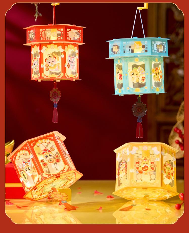 Ano do Cavalo Ano Novo Lanterna Transparente DIY Kit de Material de Artesanato para Jardim de Infância Lanterna Infantil de Mão com Luz