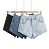 2023 Verão Cintura Alta Slimming A-line Hot Pants Jeans Feminino Retro Lavado Stretch Perna Larga Shorts Sexy