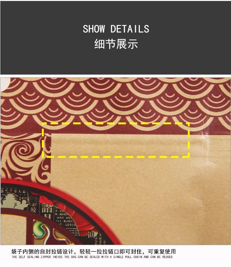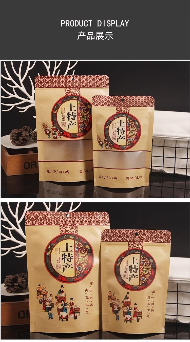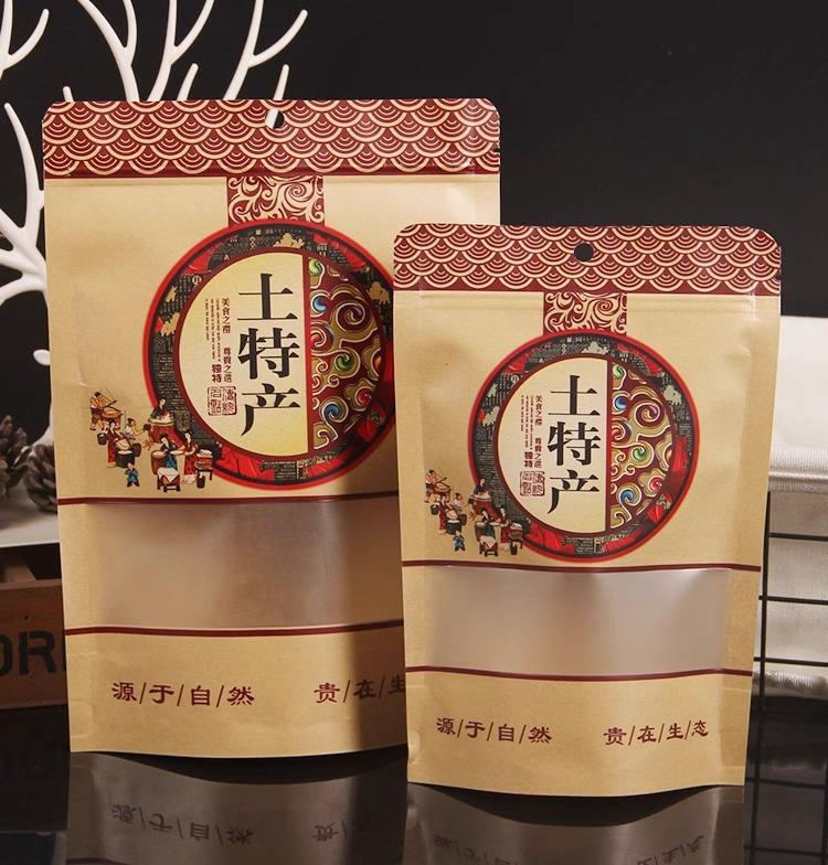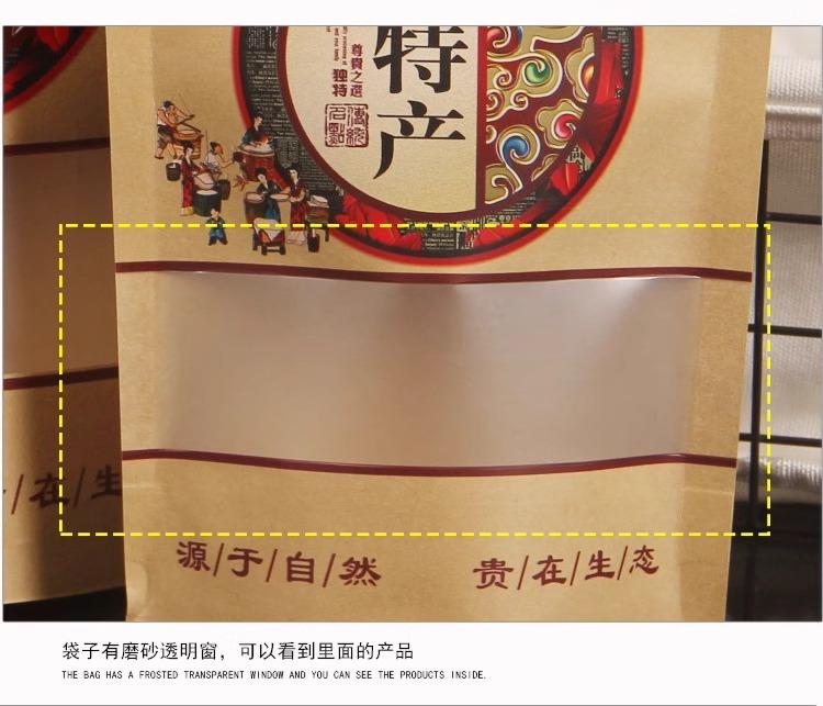 Saco de embalagem especial nativa cogumelo agaric autovedante autoportante batata-doce seca açúcar mascavo frutas secas nozes papel kraft abertura de janela