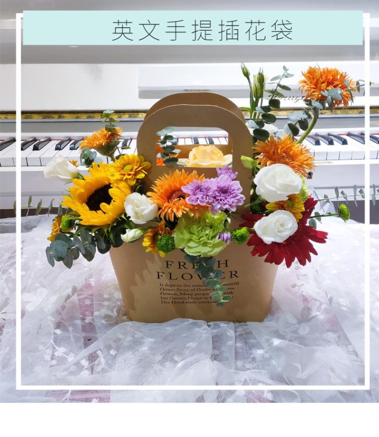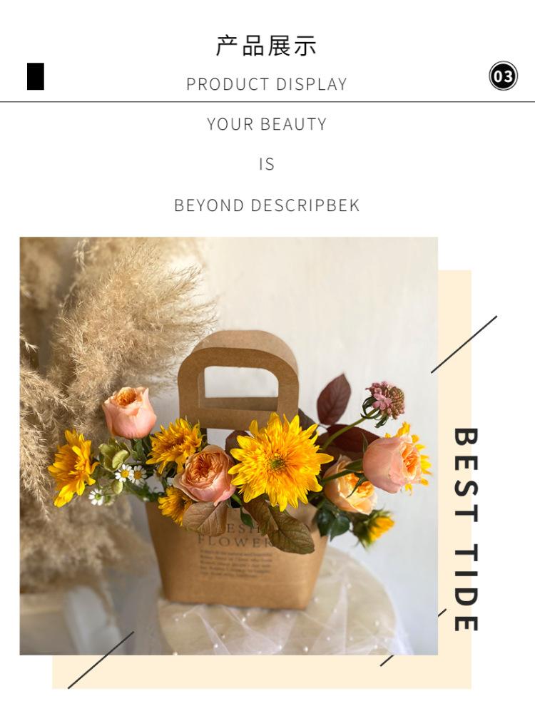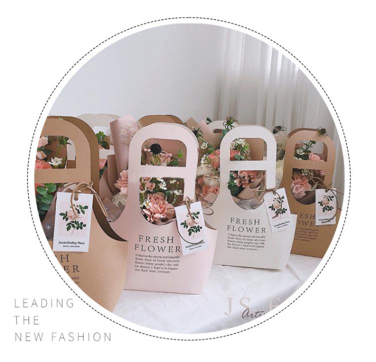 Sacola dobrável à prova d'água para o Dia dos Namorados em inglês, Dia de Ação de Graças, Dia dos Professores, Sacola de papel Kraft, Embalagem de flores