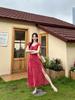 Tiro real 2024 verão novo estilo francês elegante gola U renda floral saia feminina cintura emagrecimento vestido dividido