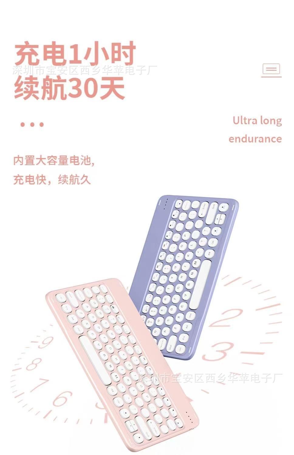 Misty blue leather case + white round cap ordinary backlit keyboard