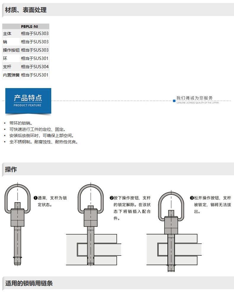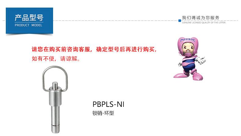 NBK PBPLS-NI Pino de bloqueio tipo anel Todo pino de aço inoxidável Botão de plástico Pino de fixação de mola integrado Rápido