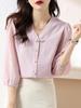 Blusa de Gasa con Mangas Abullonadas de Tres Cuartos para Mujer, Nuevo Estilo Primavera 2026, Elegante Top de Cuello en V, Blusa Chic para Principios de Otoño