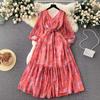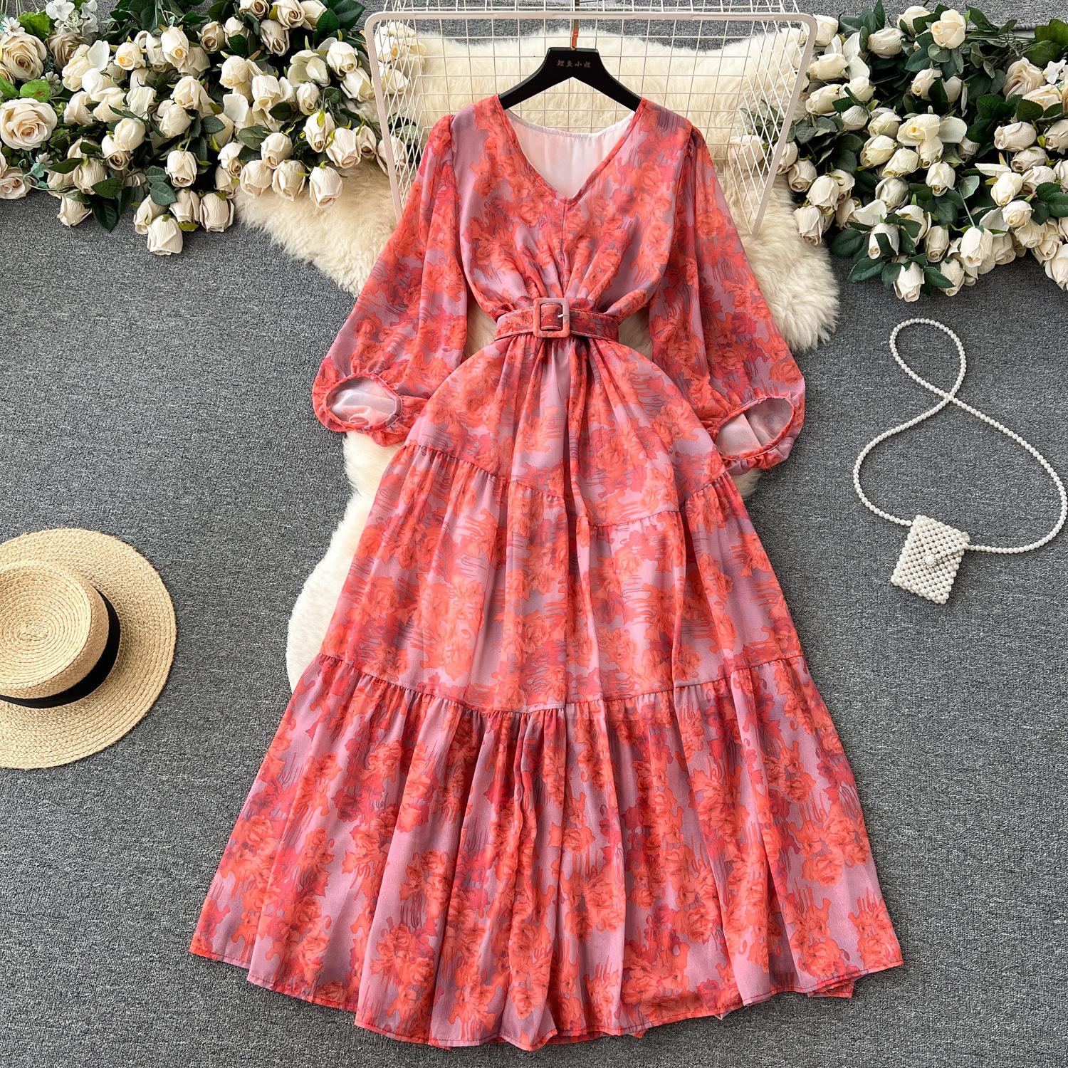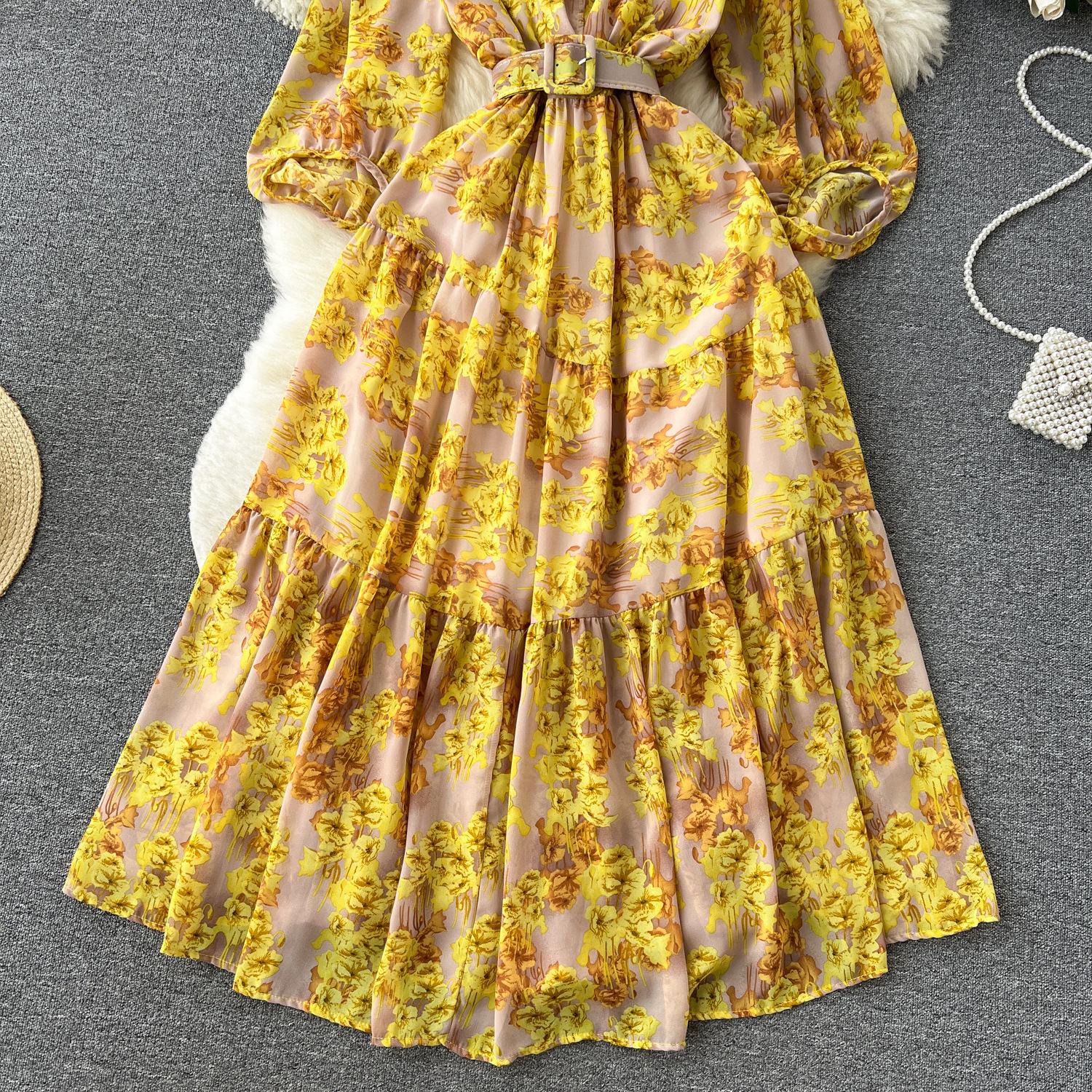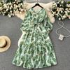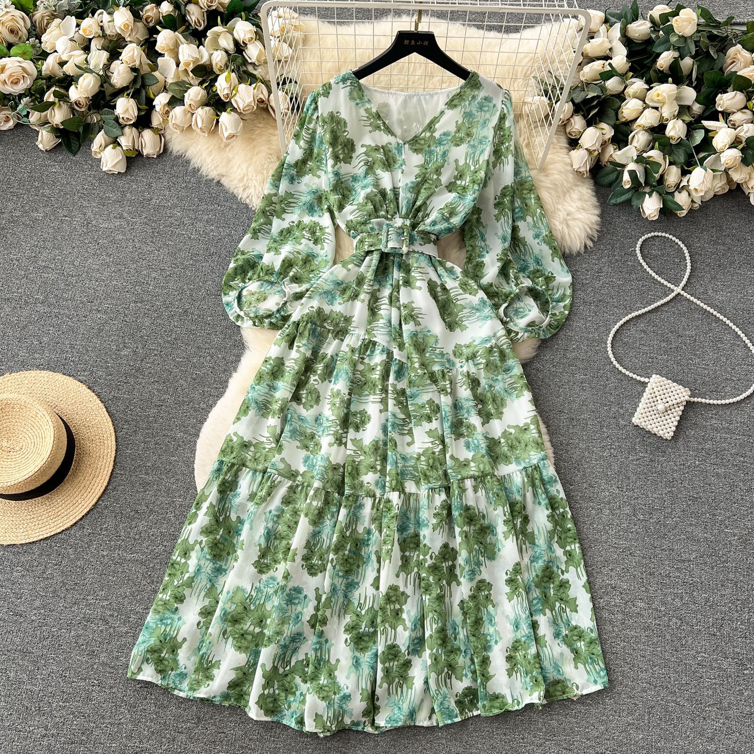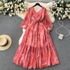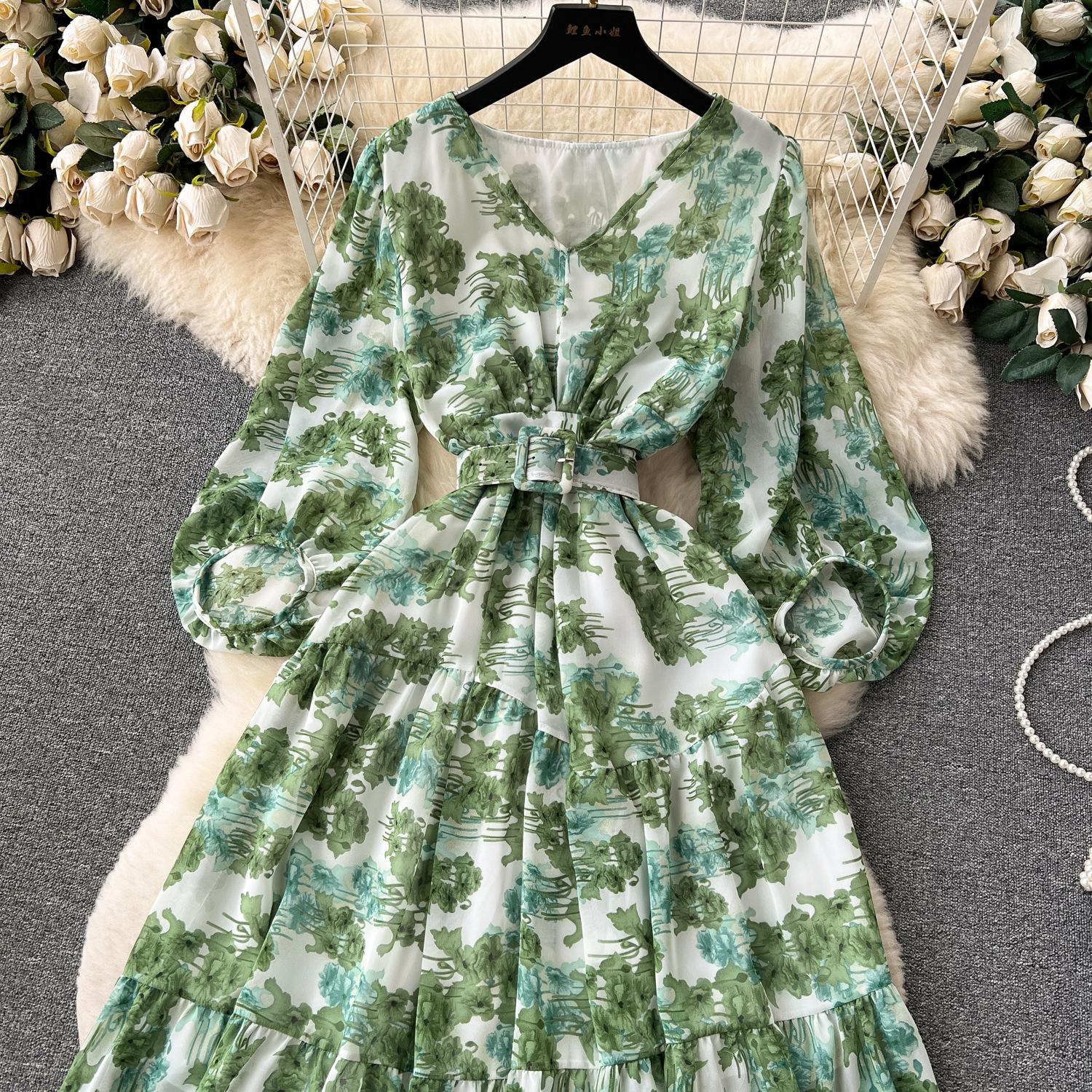 Vestido floral retrô francês feminino primavera e verão manga lanterna design senso nicho princesa elegante vestido grande