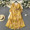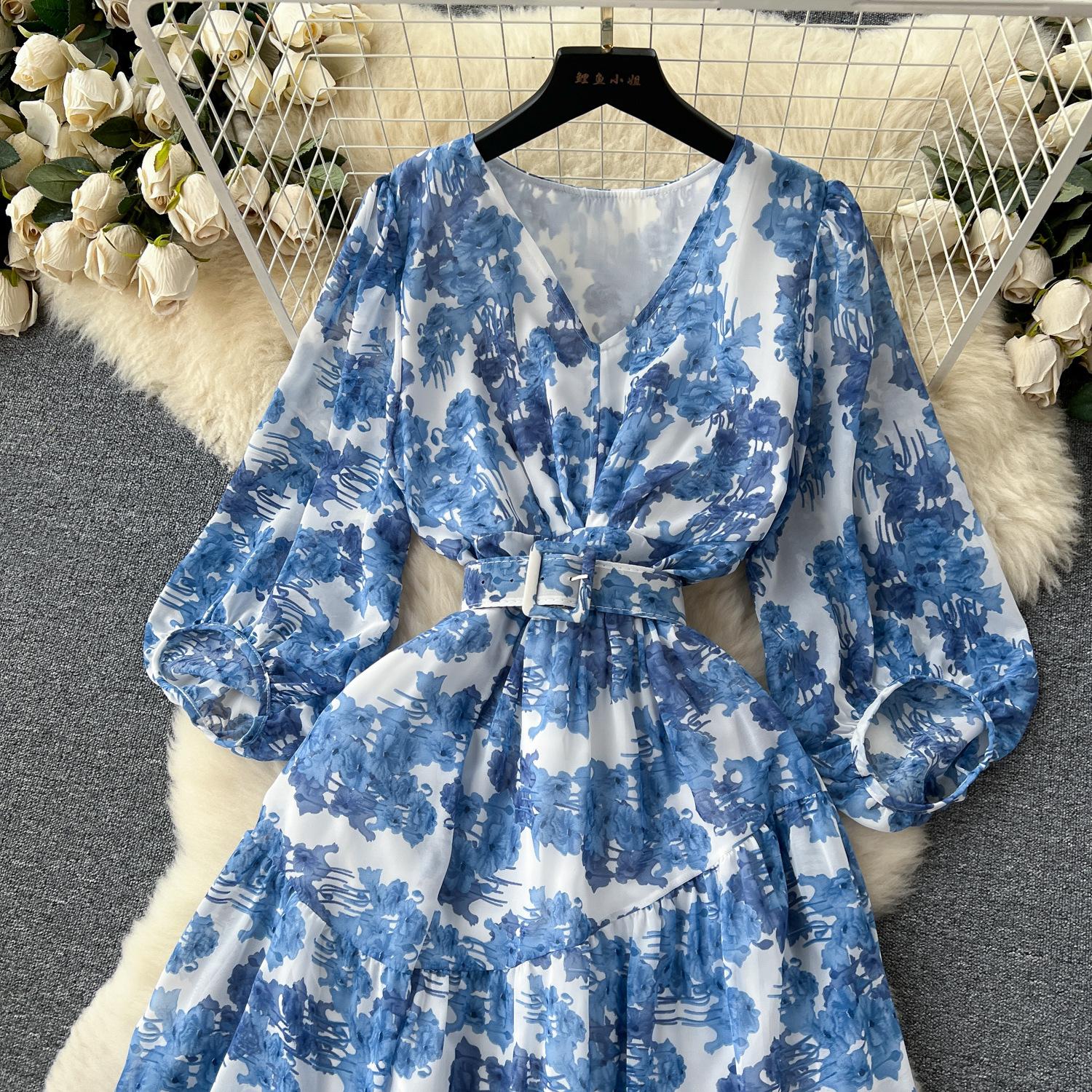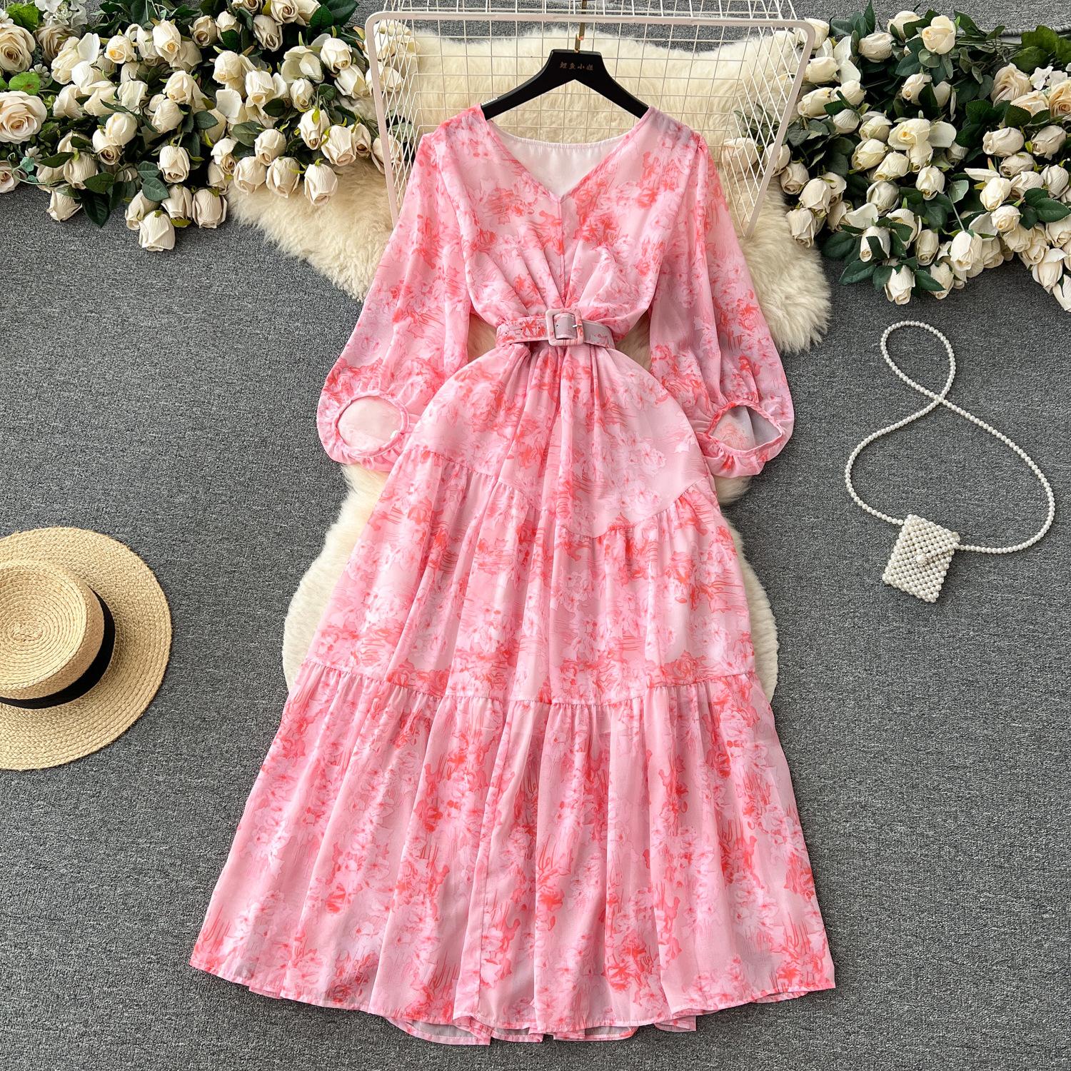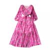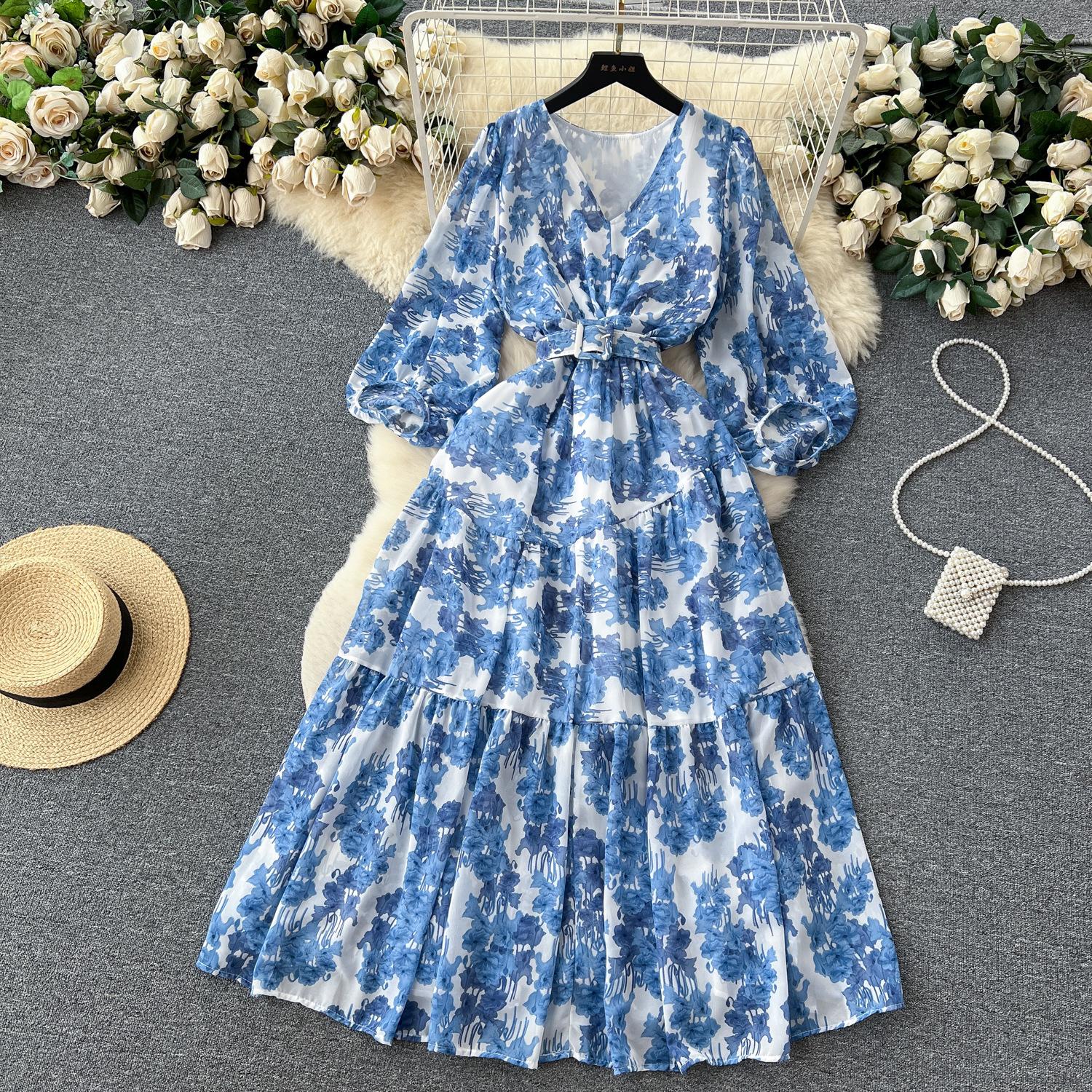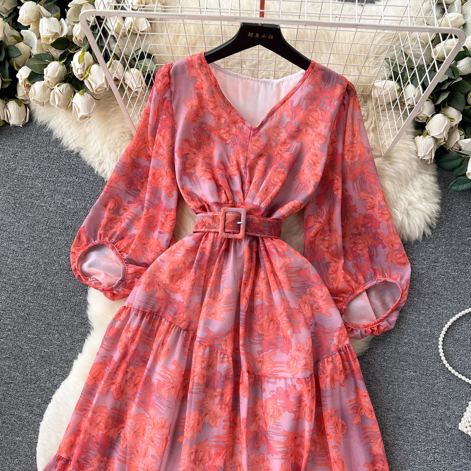 Vestido floral retrô francês feminino primavera e verão manga lanterna design senso nicho princesa elegante vestido grande