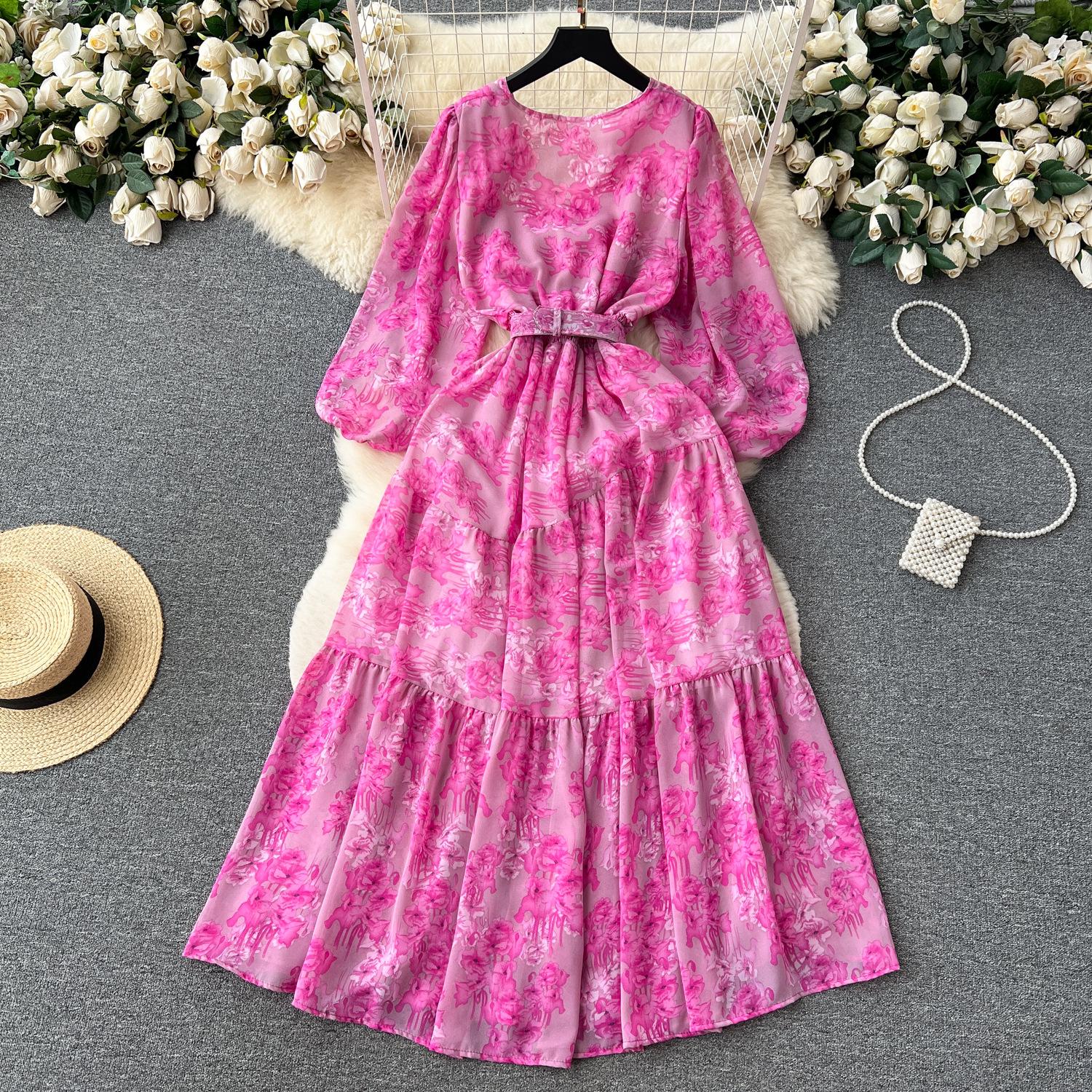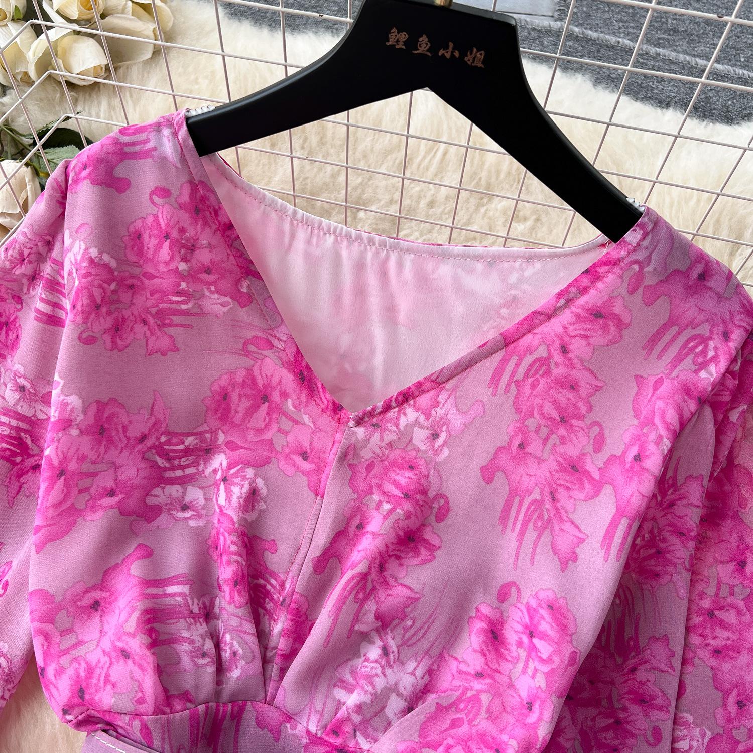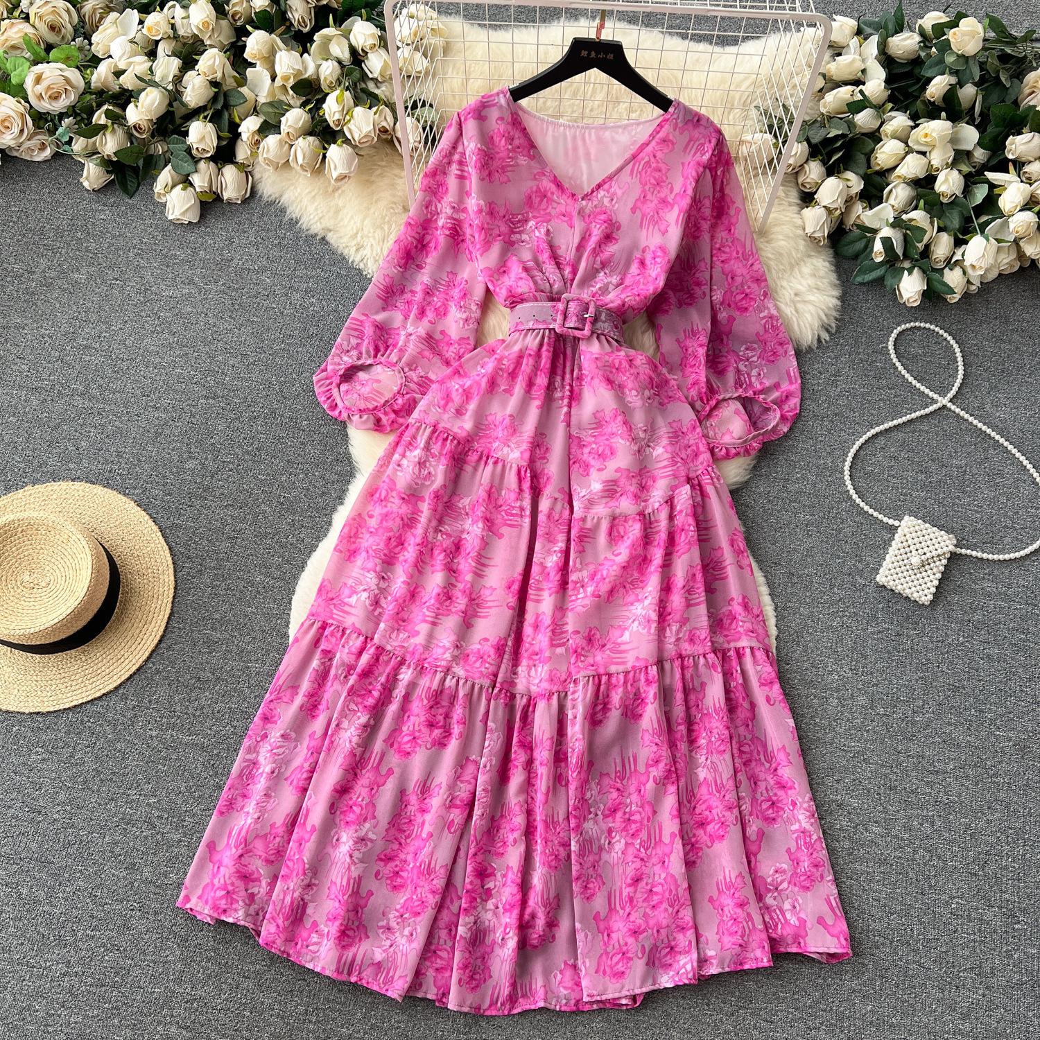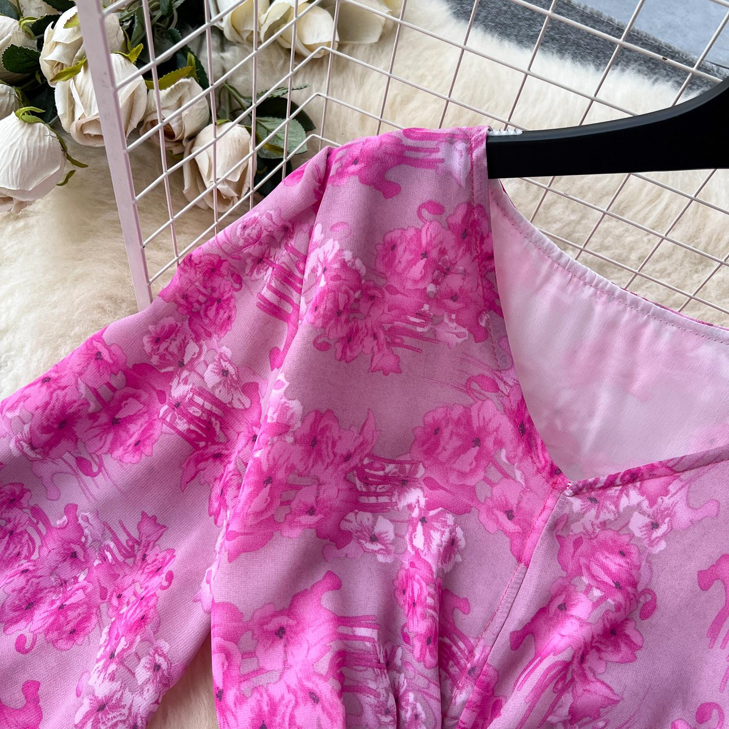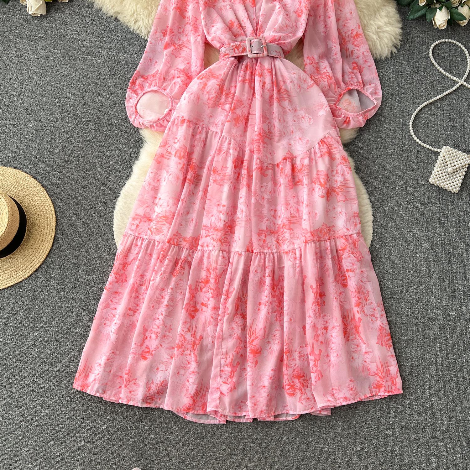 Vestido floral retrô francês feminino primavera e verão manga lanterna design senso nicho princesa elegante vestido grande