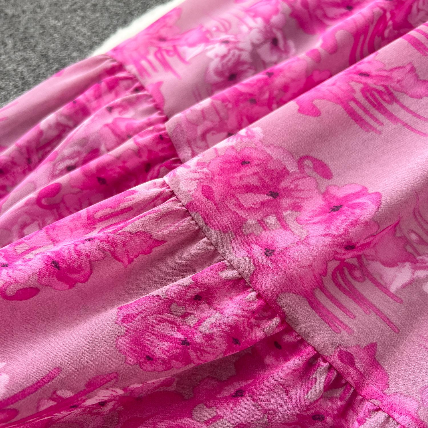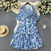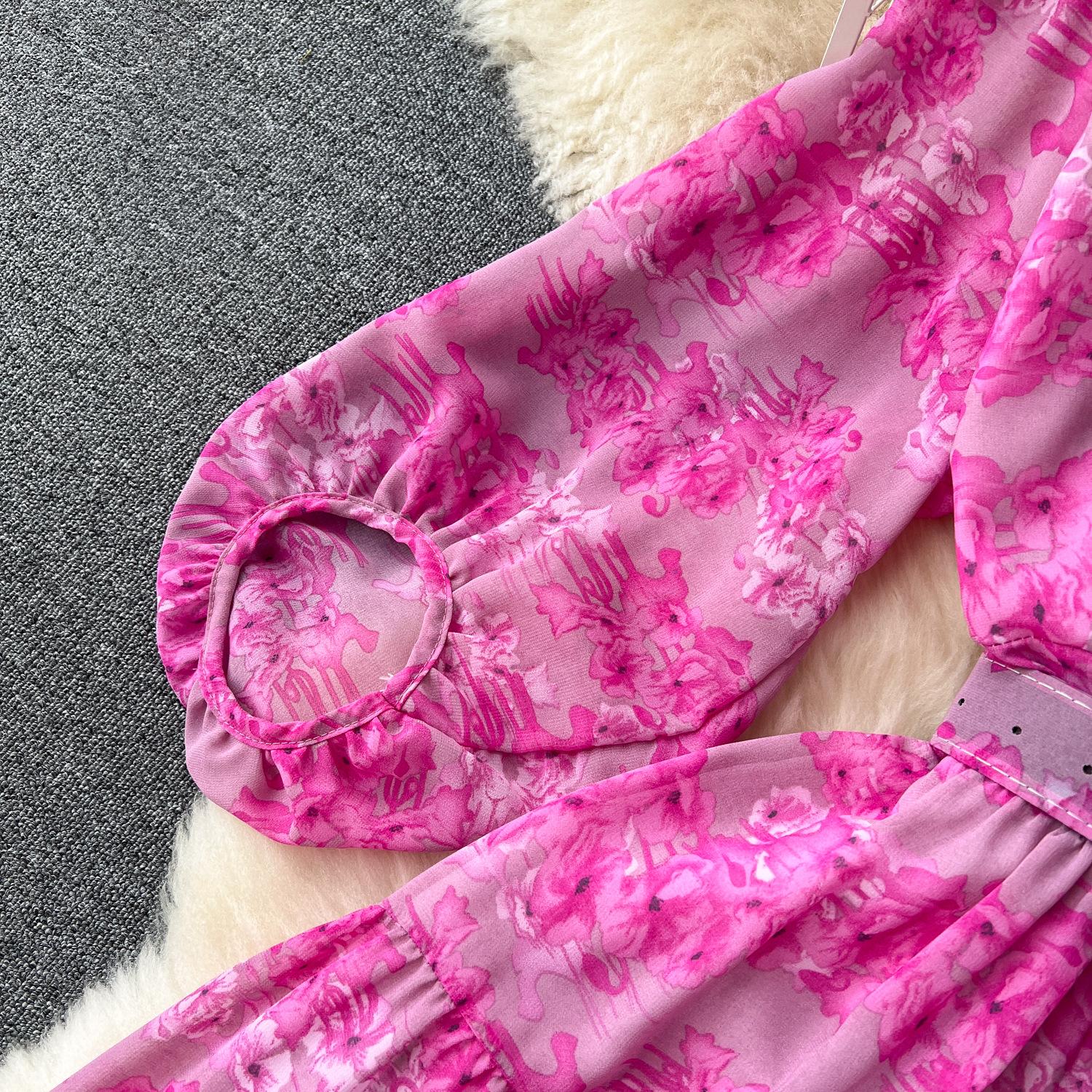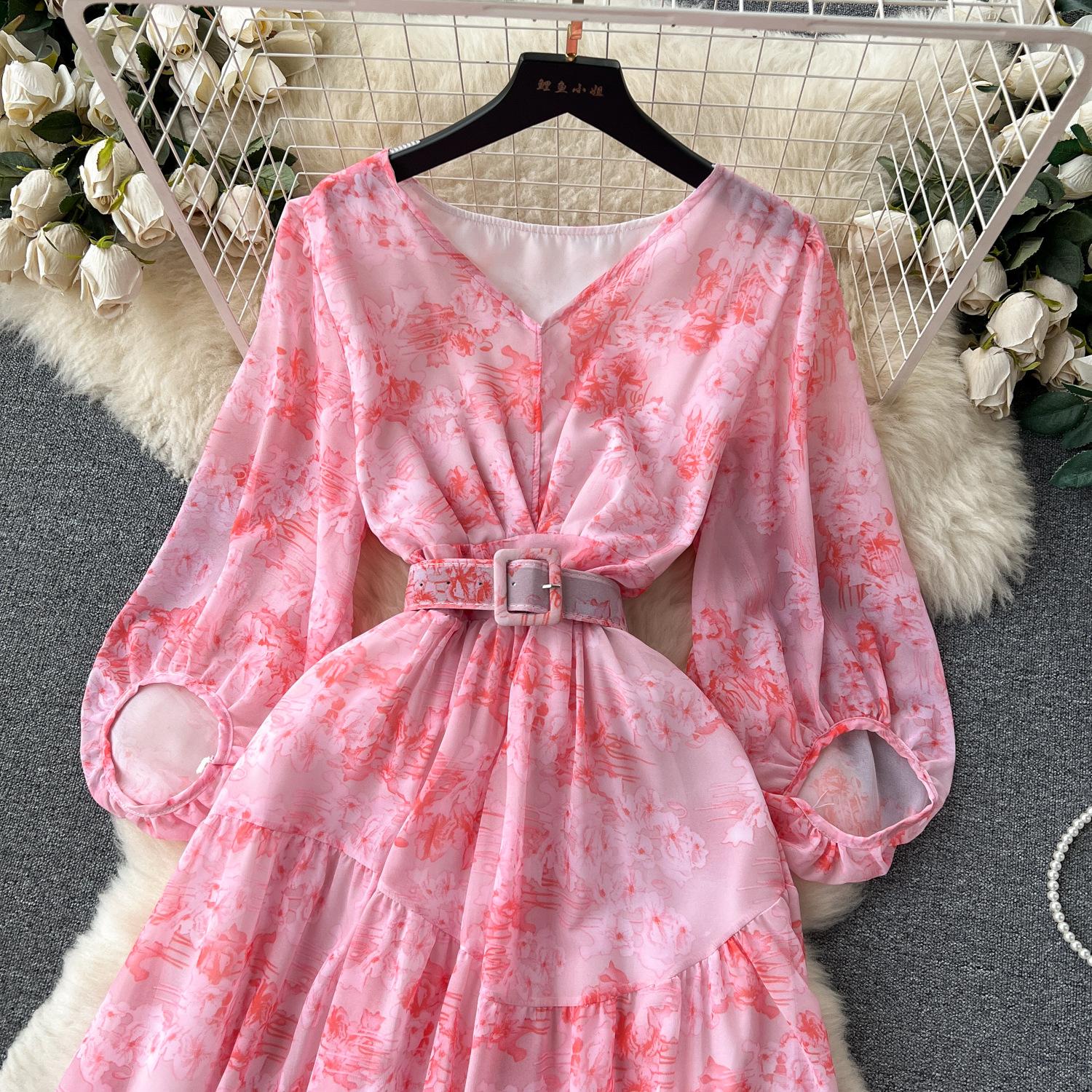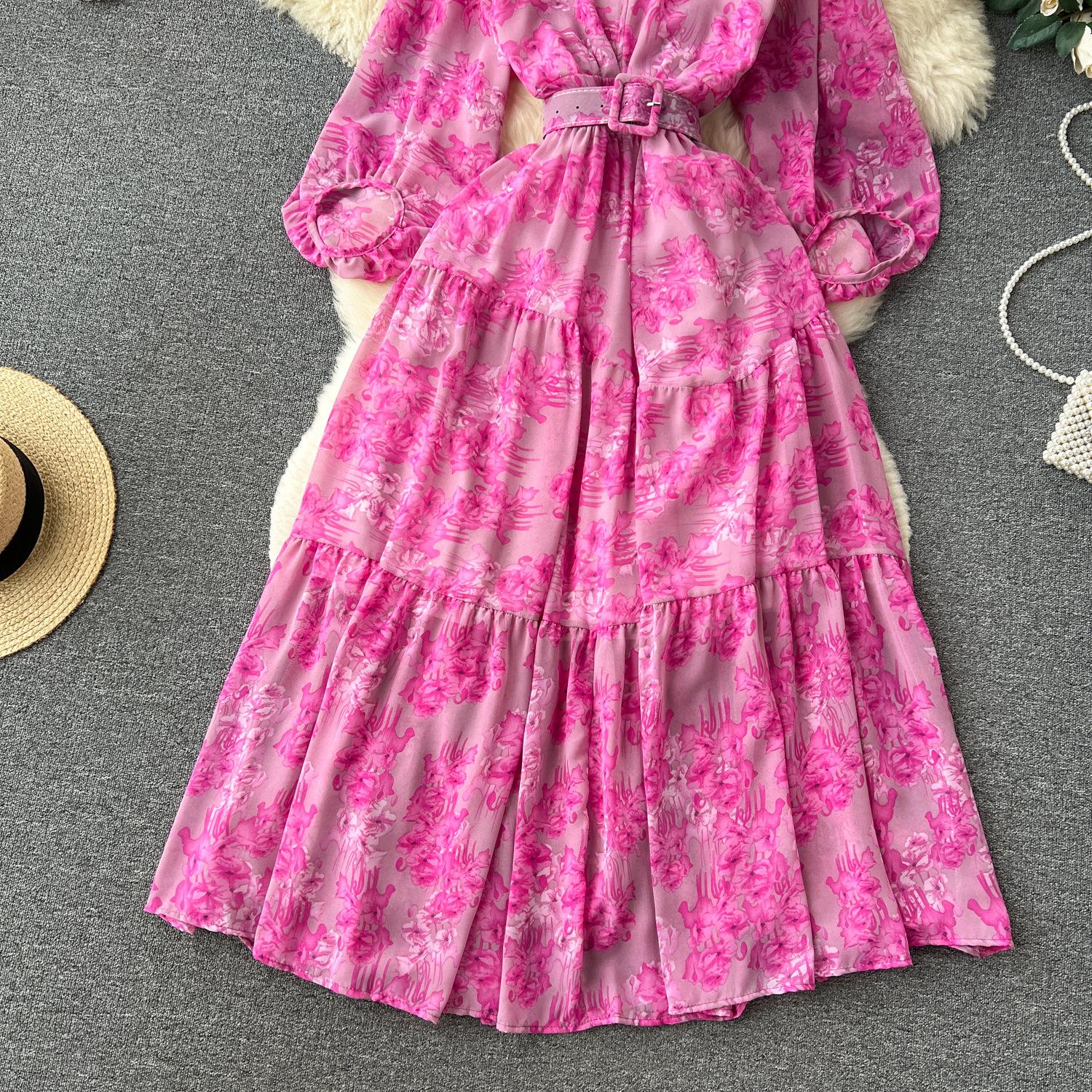 Vestido floral retrô francês feminino primavera e verão manga lanterna design senso nicho princesa elegante vestido grande