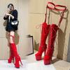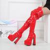 Botas de salto alto super alto 26CM com estampa de cobra, botas de cano alto sexy, botas de moda para palco, boate, passarela, botas plus size, botas de cavaleiro