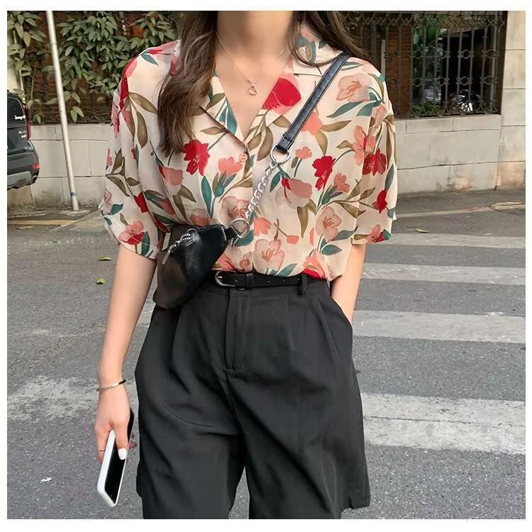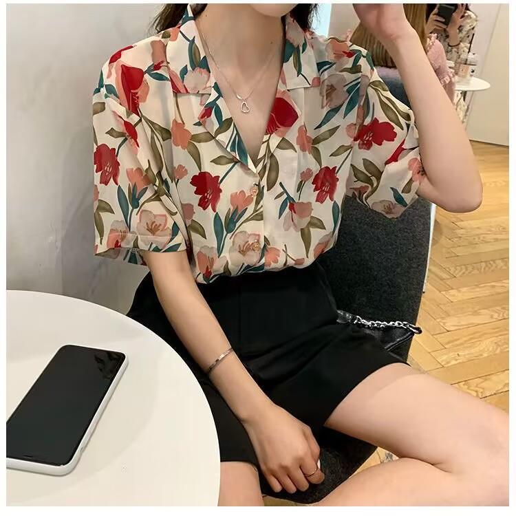 Design Sense Niche Light Mature Chiffon Elegante Camisa Feminina Estampada Top Estilo Coreano Camisa Feminina Verão